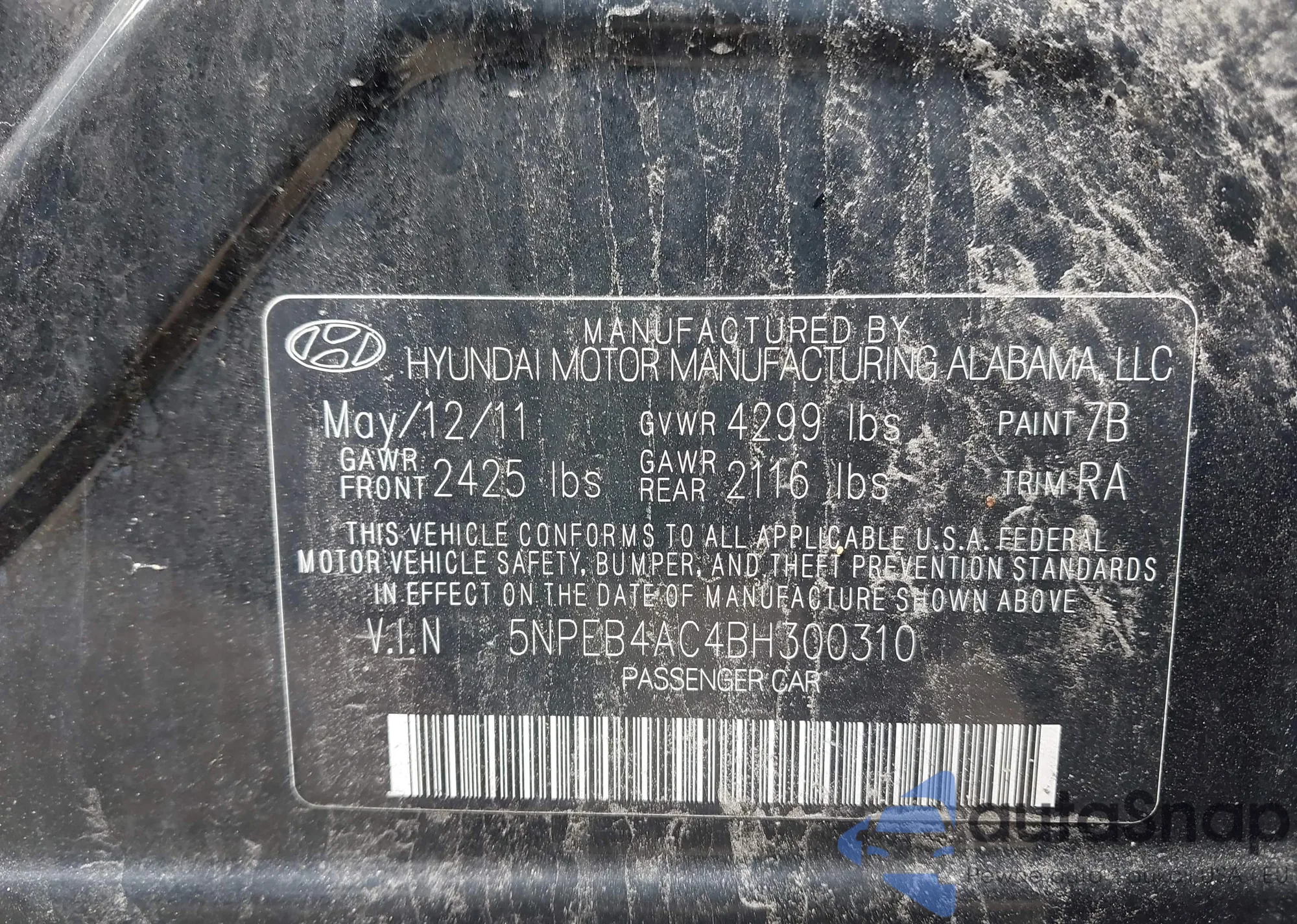 LOT: 42570028 VIN: 5NPEB4AC4BH300310