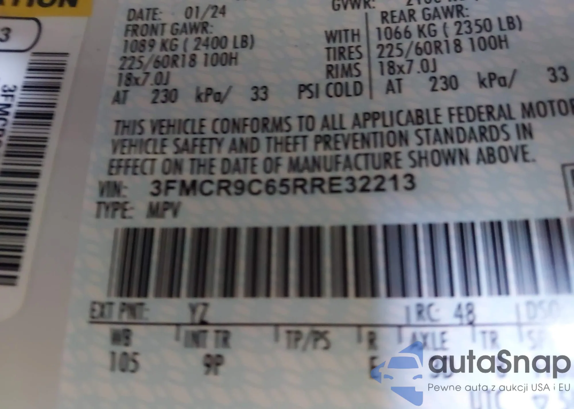 • VIN 3FMCR9C65RRE32213