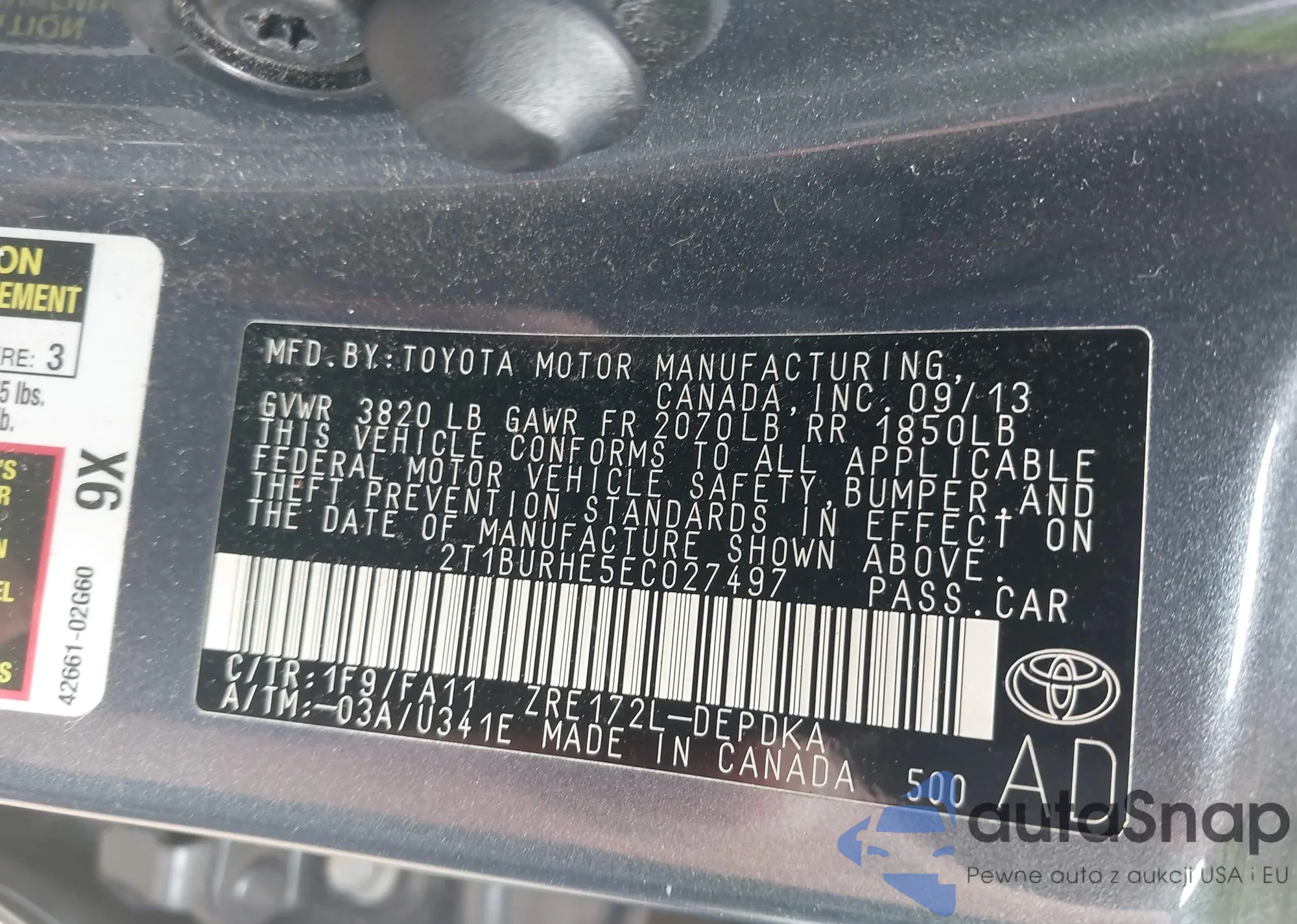 • VIN 4T1BF1FK4HU785323