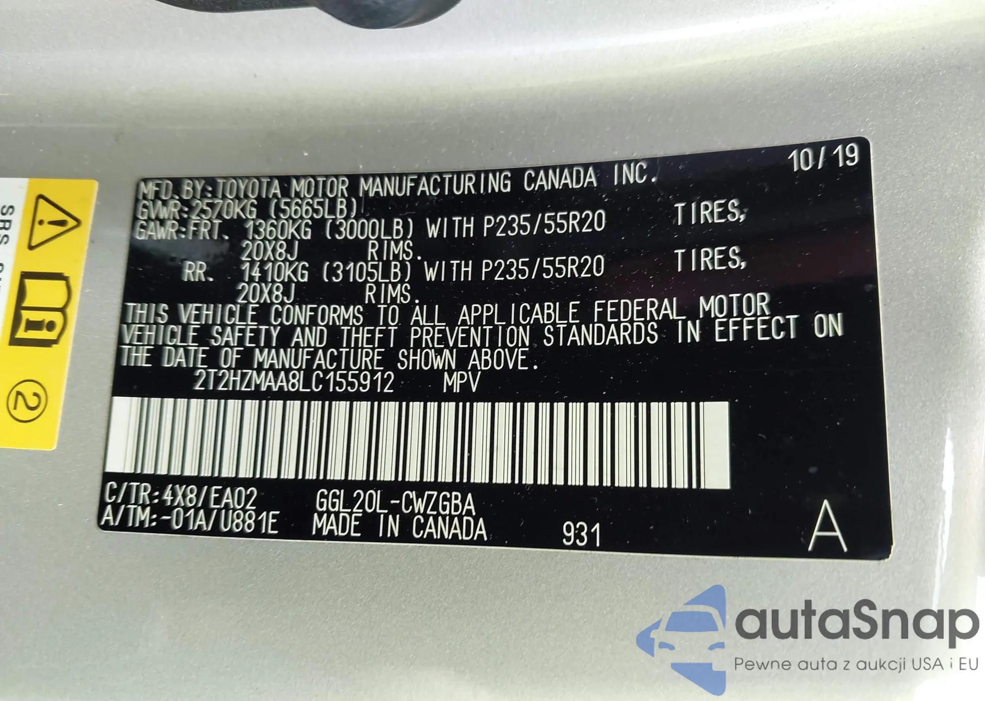 • VIN 2T2HZMAA8LC155912
