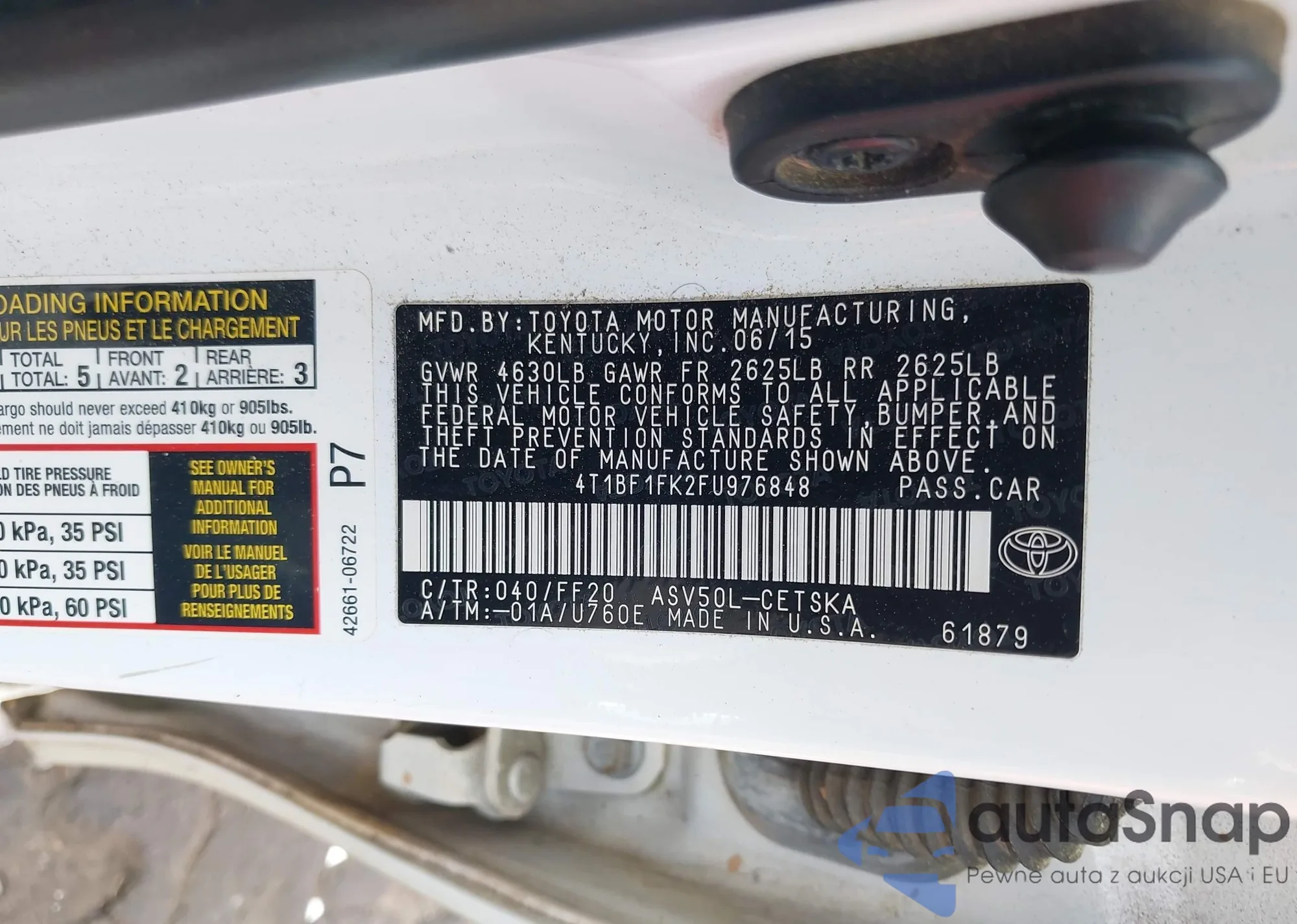 • VIN 4T1BF1FK2FU976848