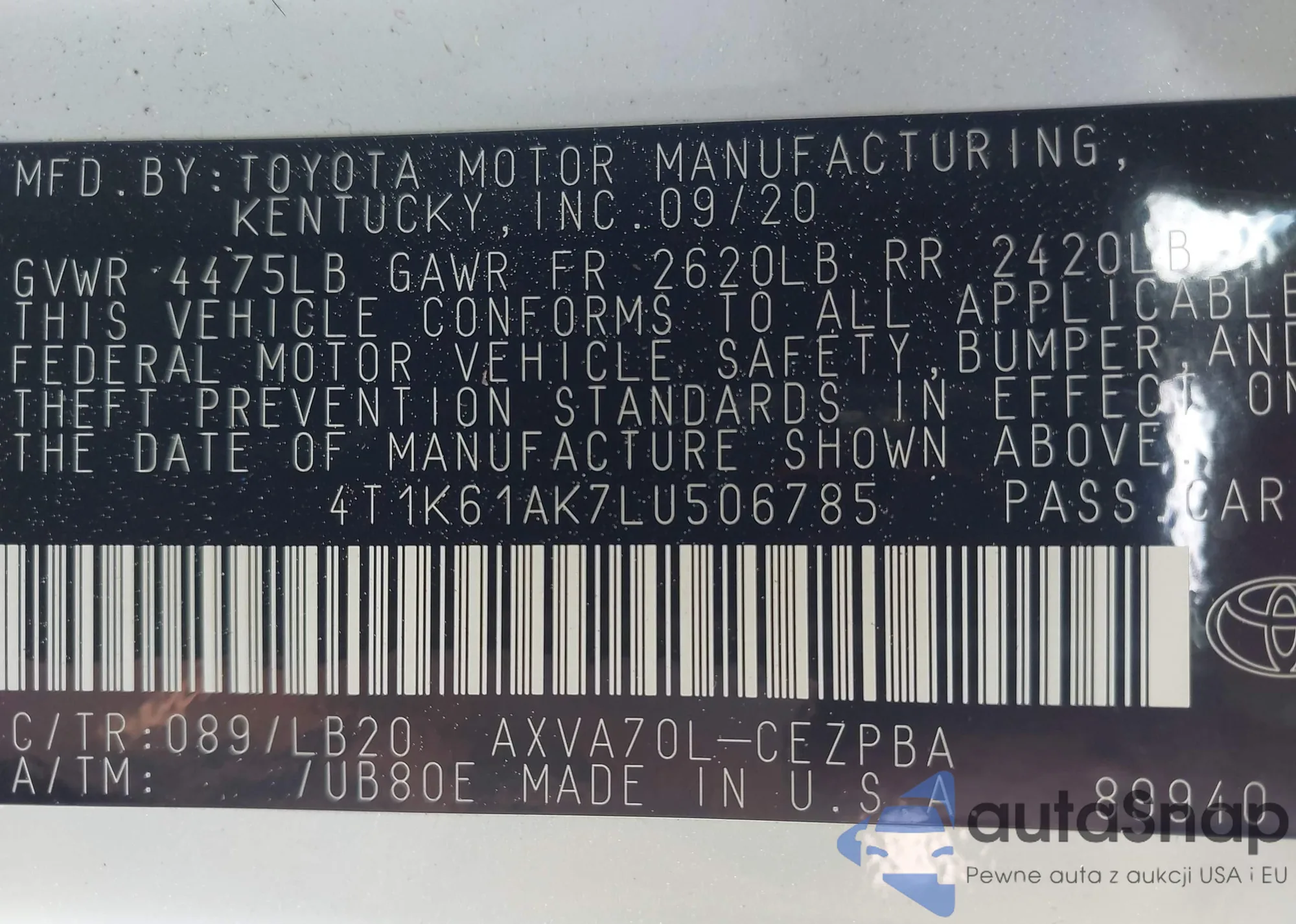 • VIN 4T1K61AK7LU506785