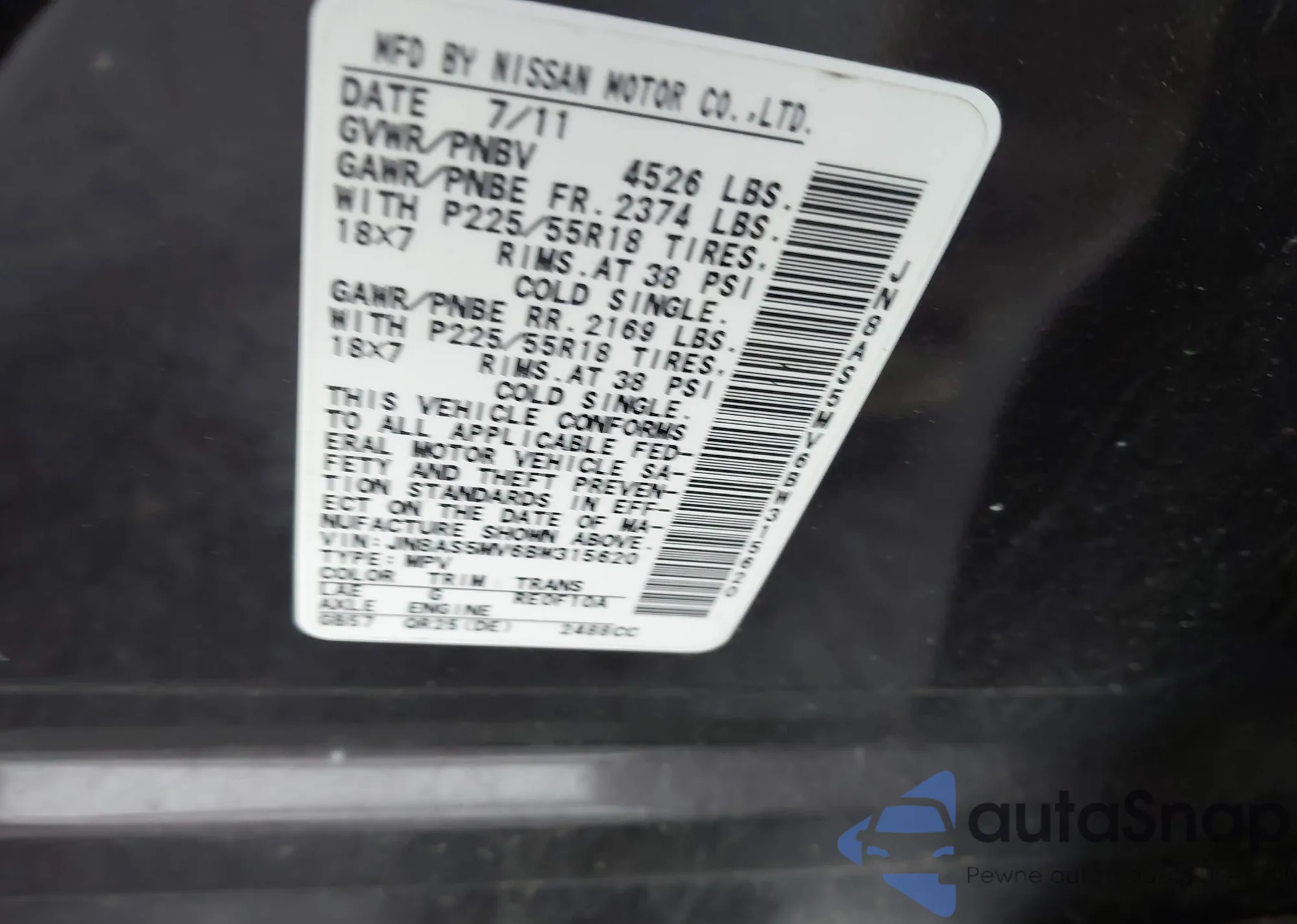 LOT: 42375564 VIN: JN8AS5MV6BW315620