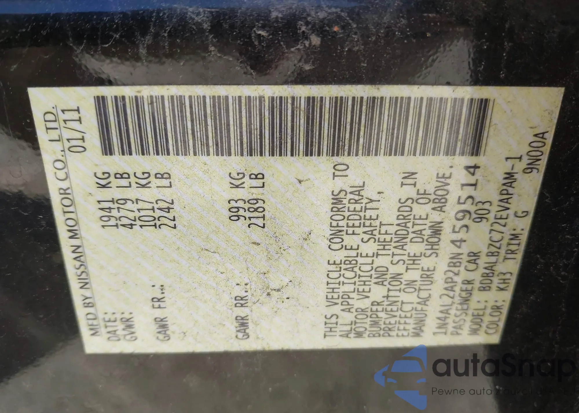 • VIN JN8AS5MV6BW315620