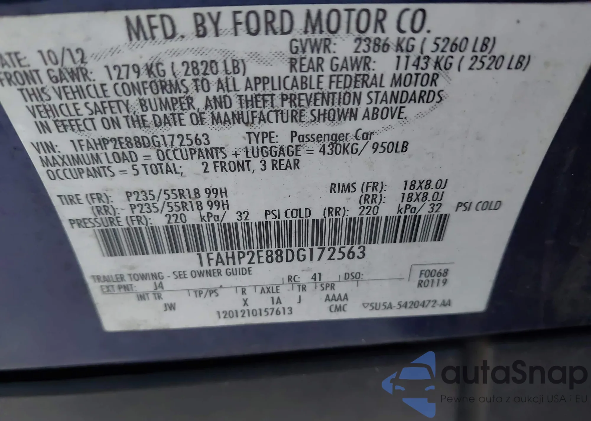 • VIN 1FAHP2KT1FG176580