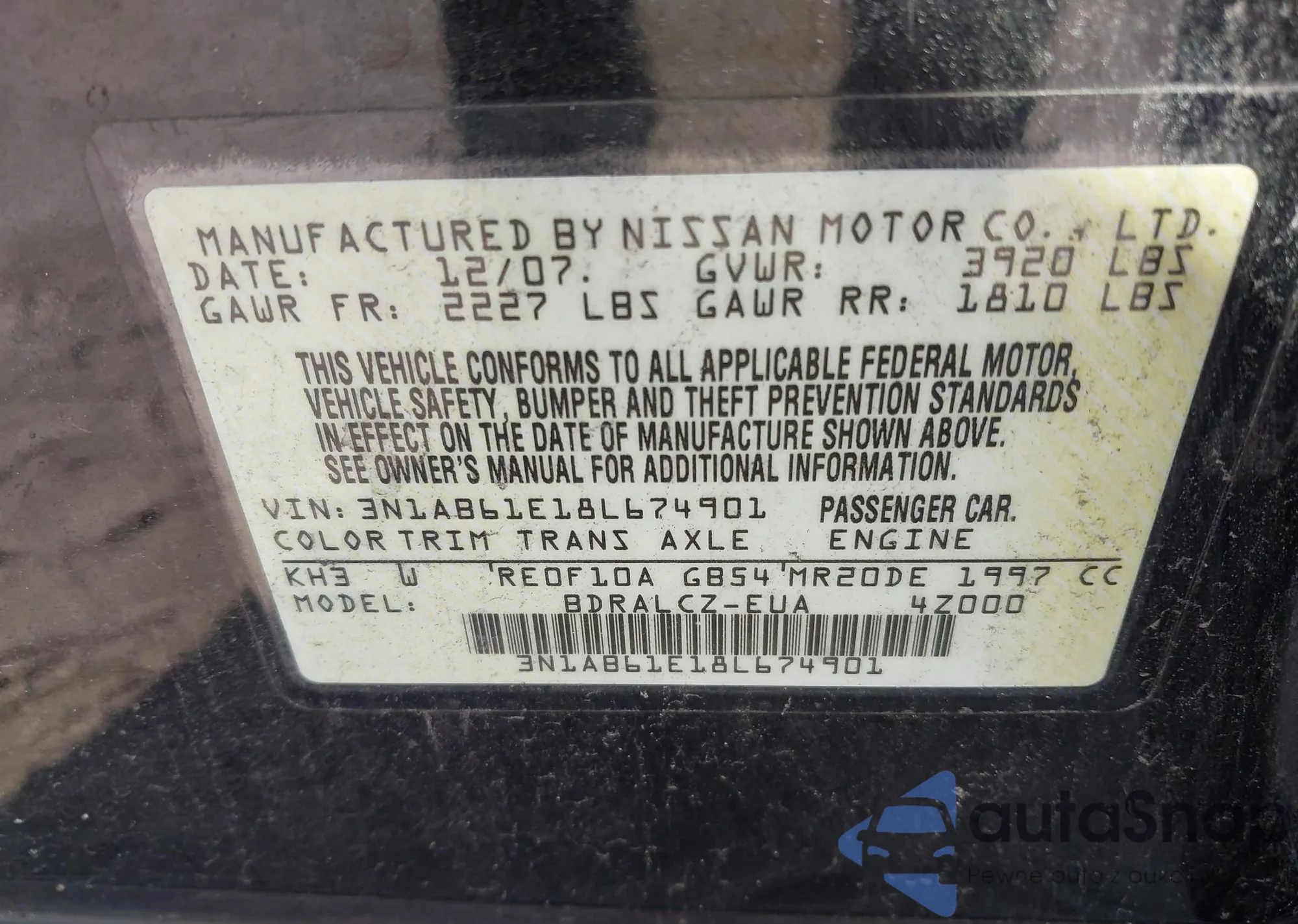 • VIN 3N1AB61E18L674901