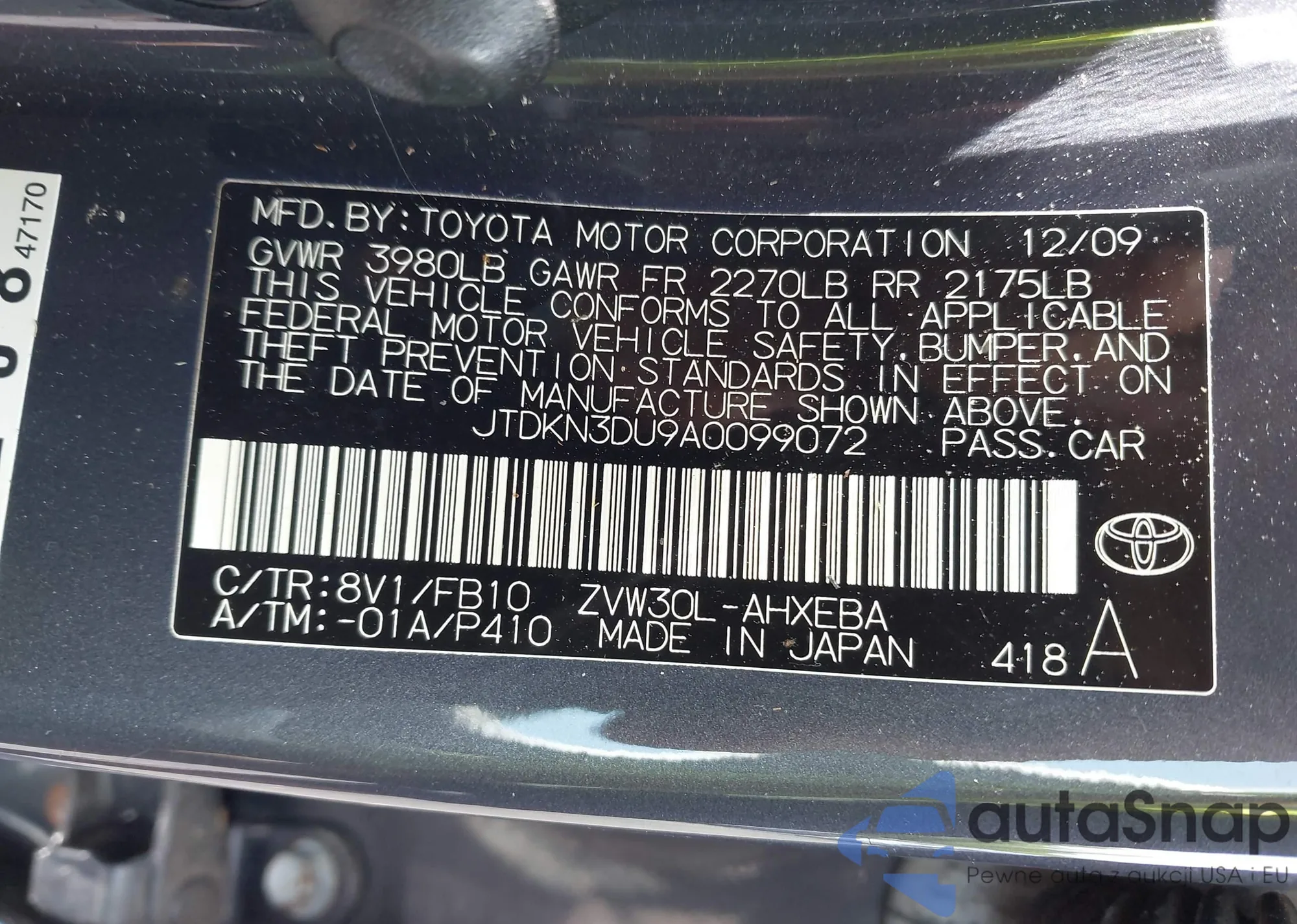 LOT: 42321687 VIN: JTDKBRFU5H3580003