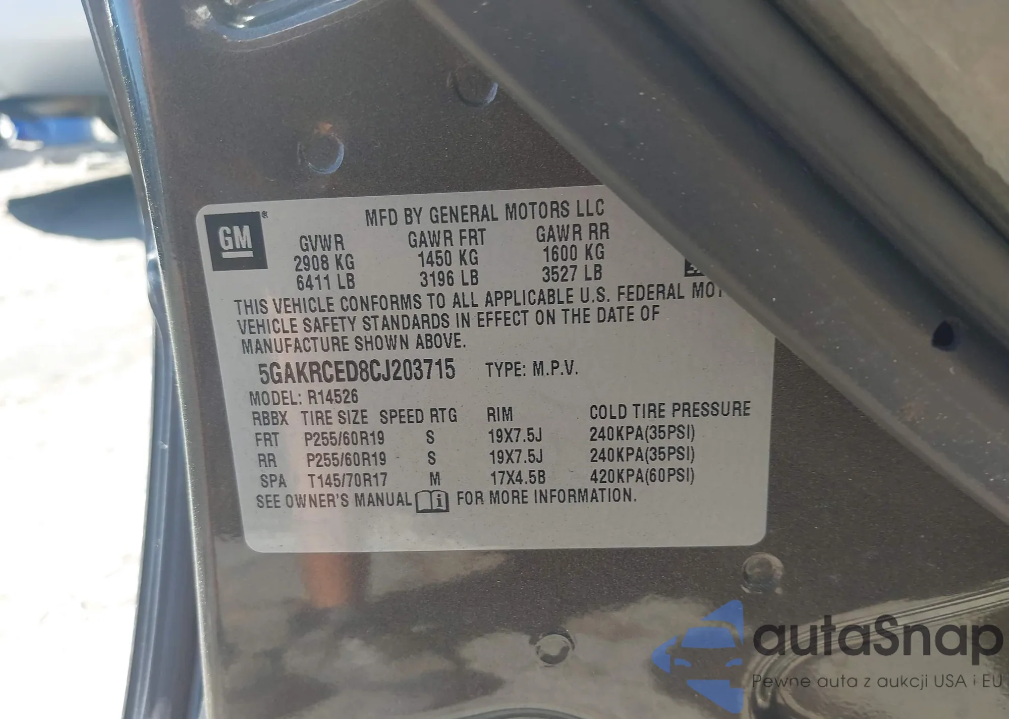 LOT: 42318778 VIN: 5GAKRCED8CJ203715