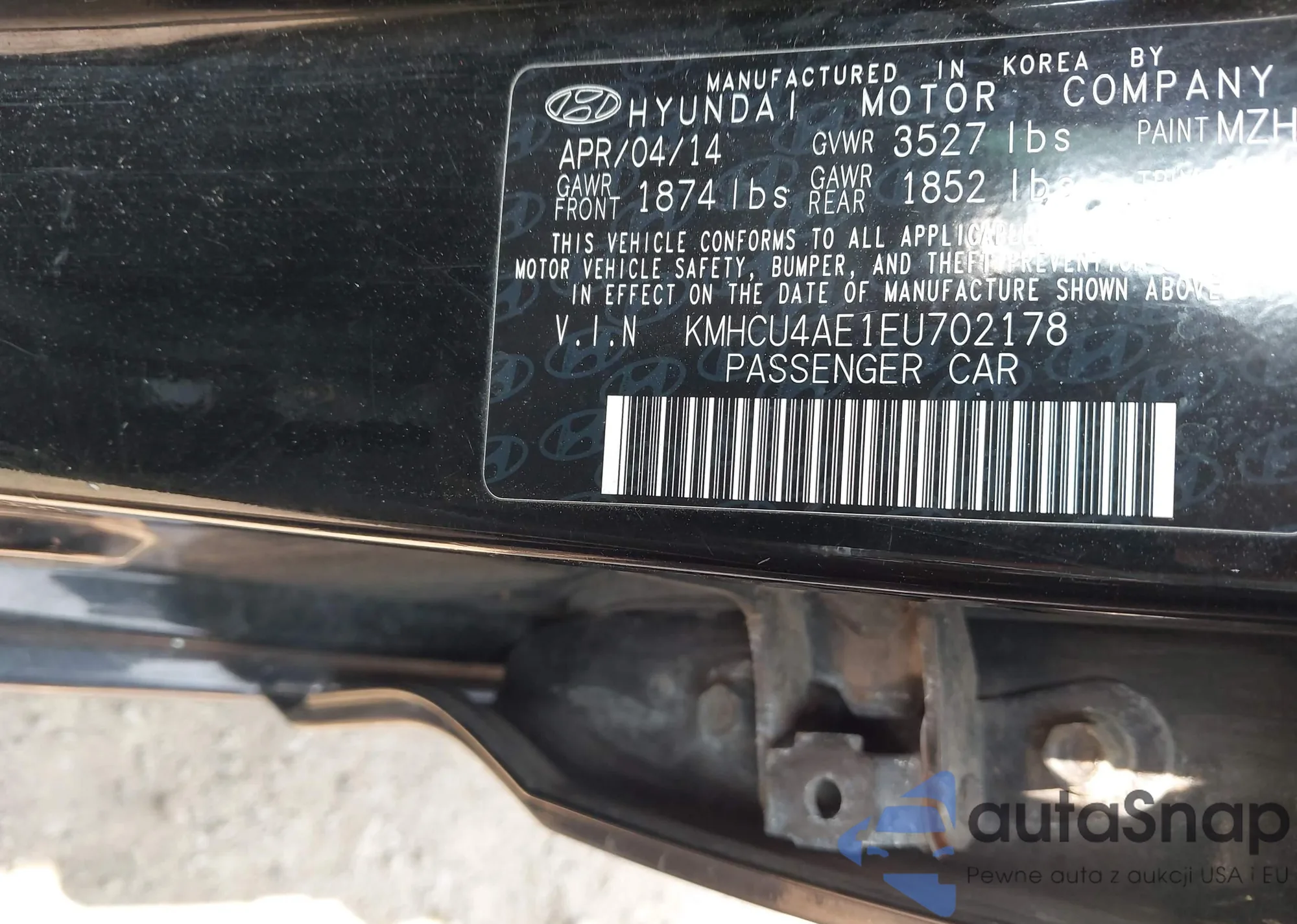 LOT: 42611554 VIN: KMHTG6AF5KU017950