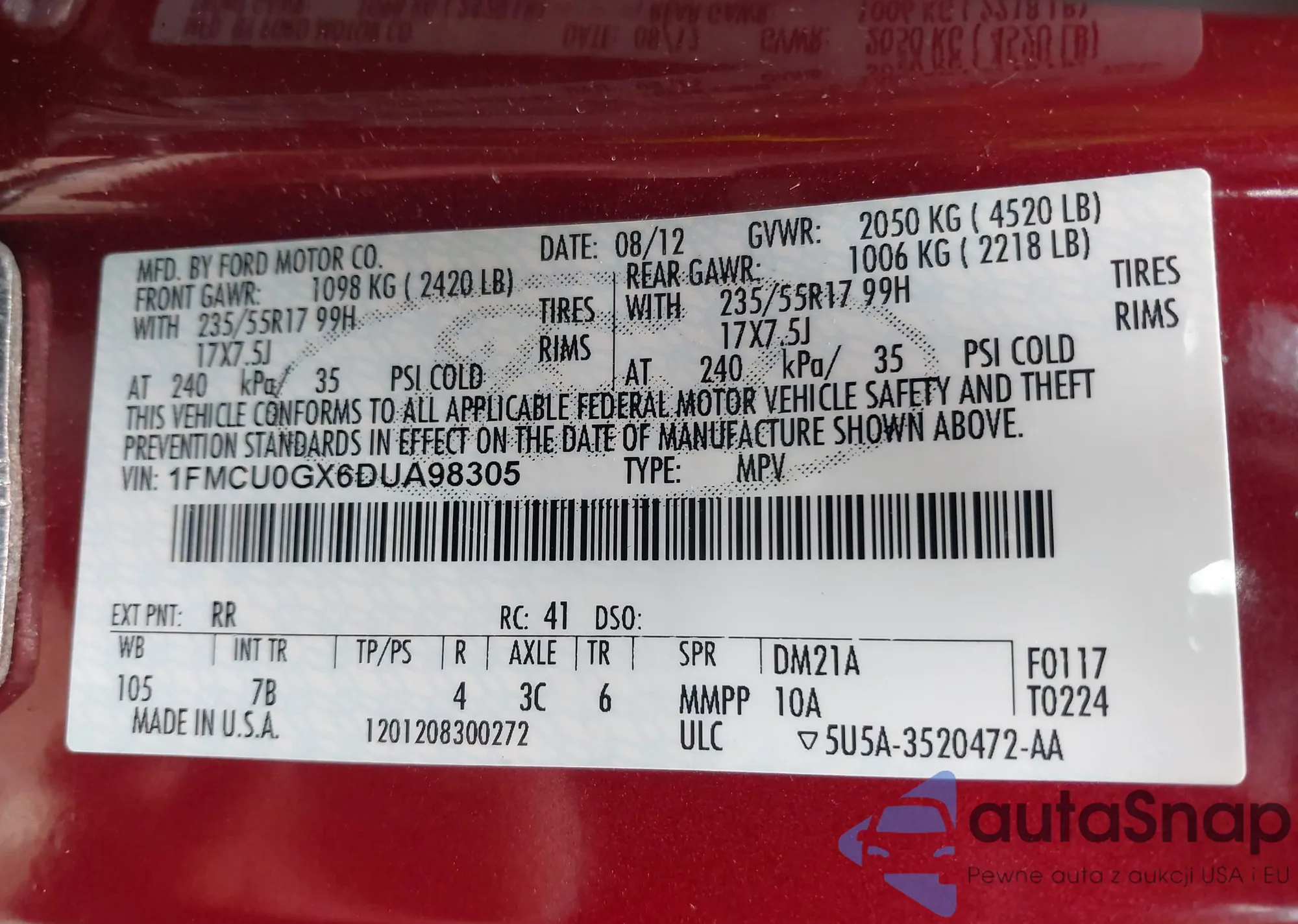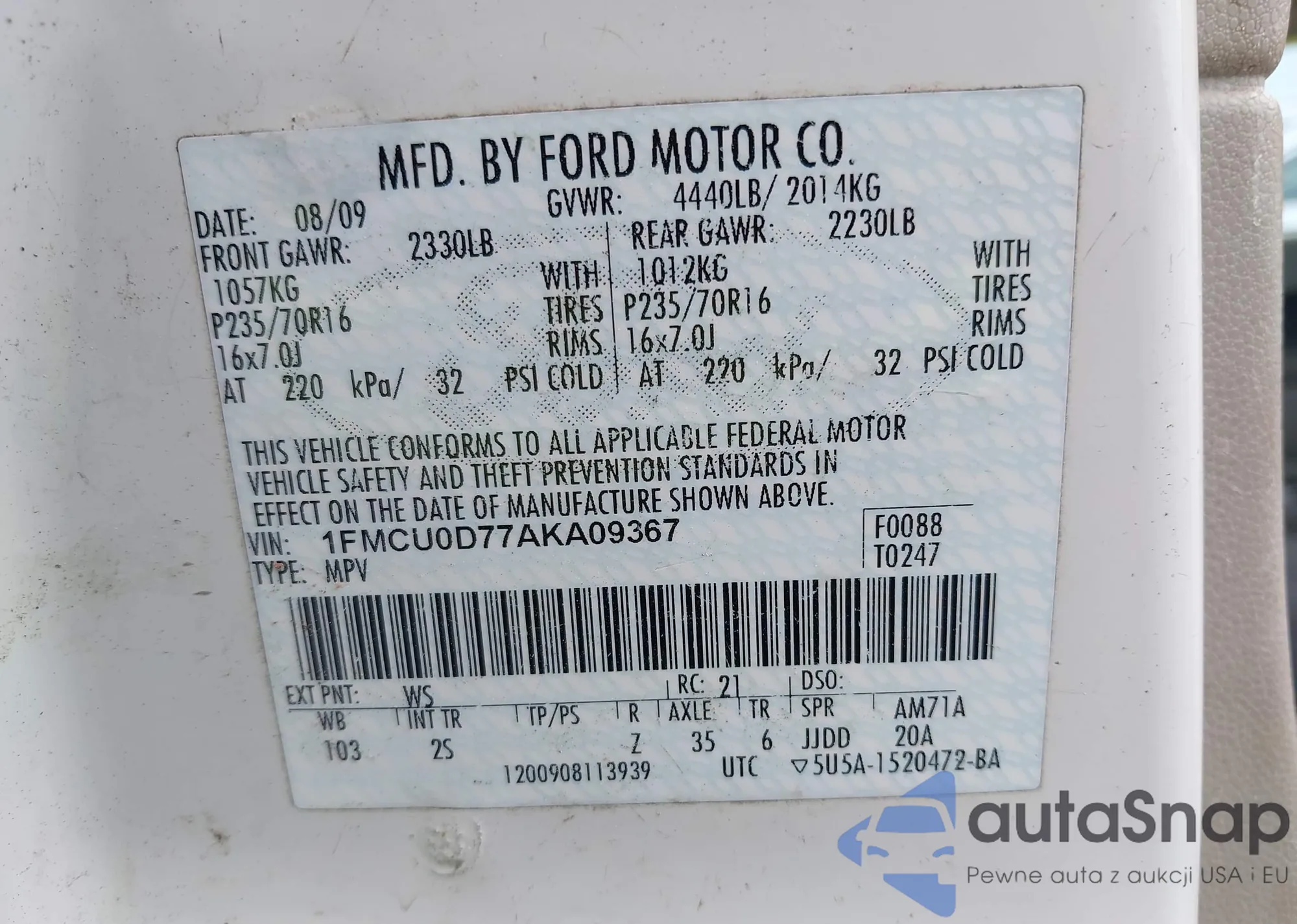 • VIN 1FMCU0D77AKA09367