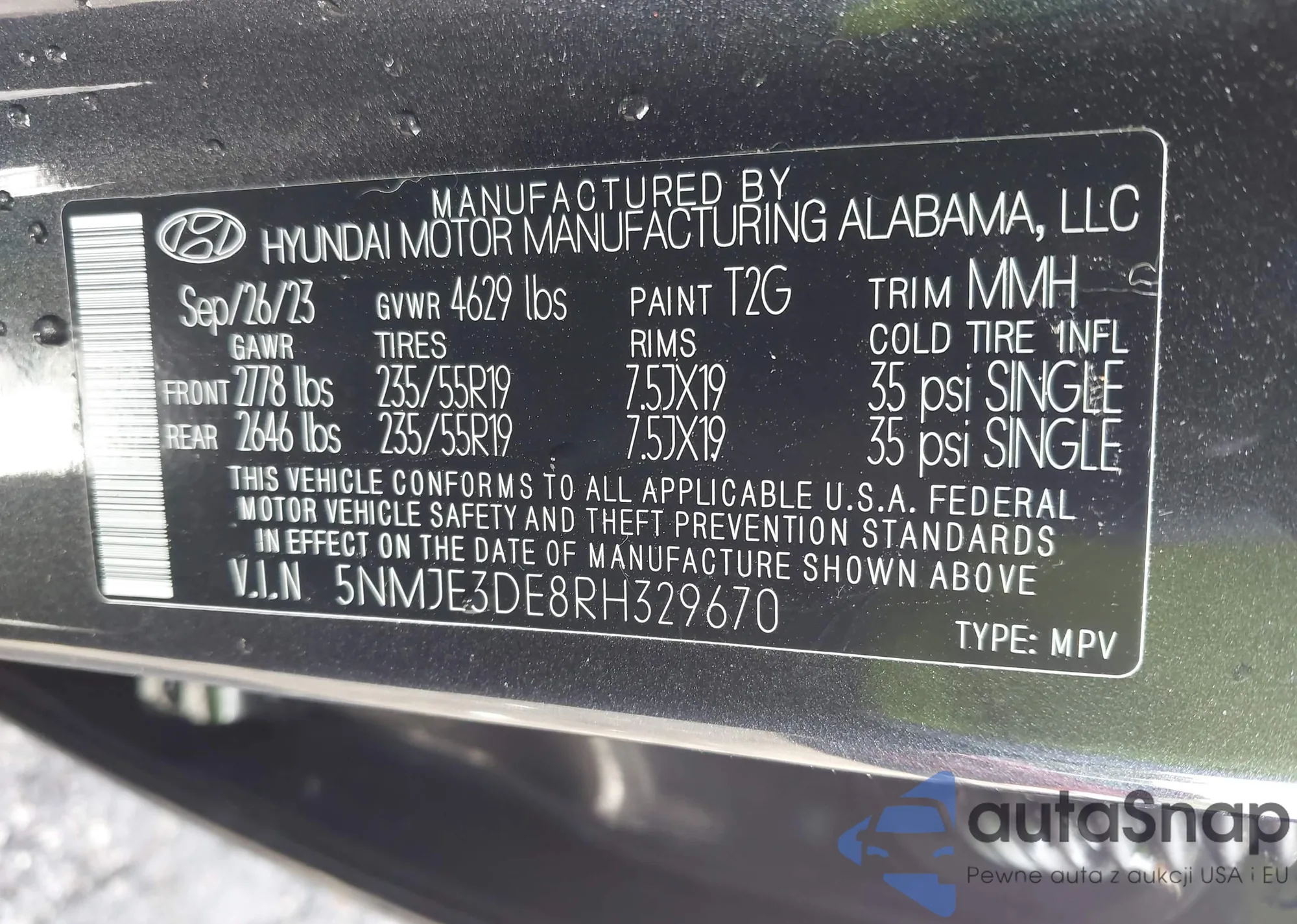 • VIN 5NMJE3DE8RH329670