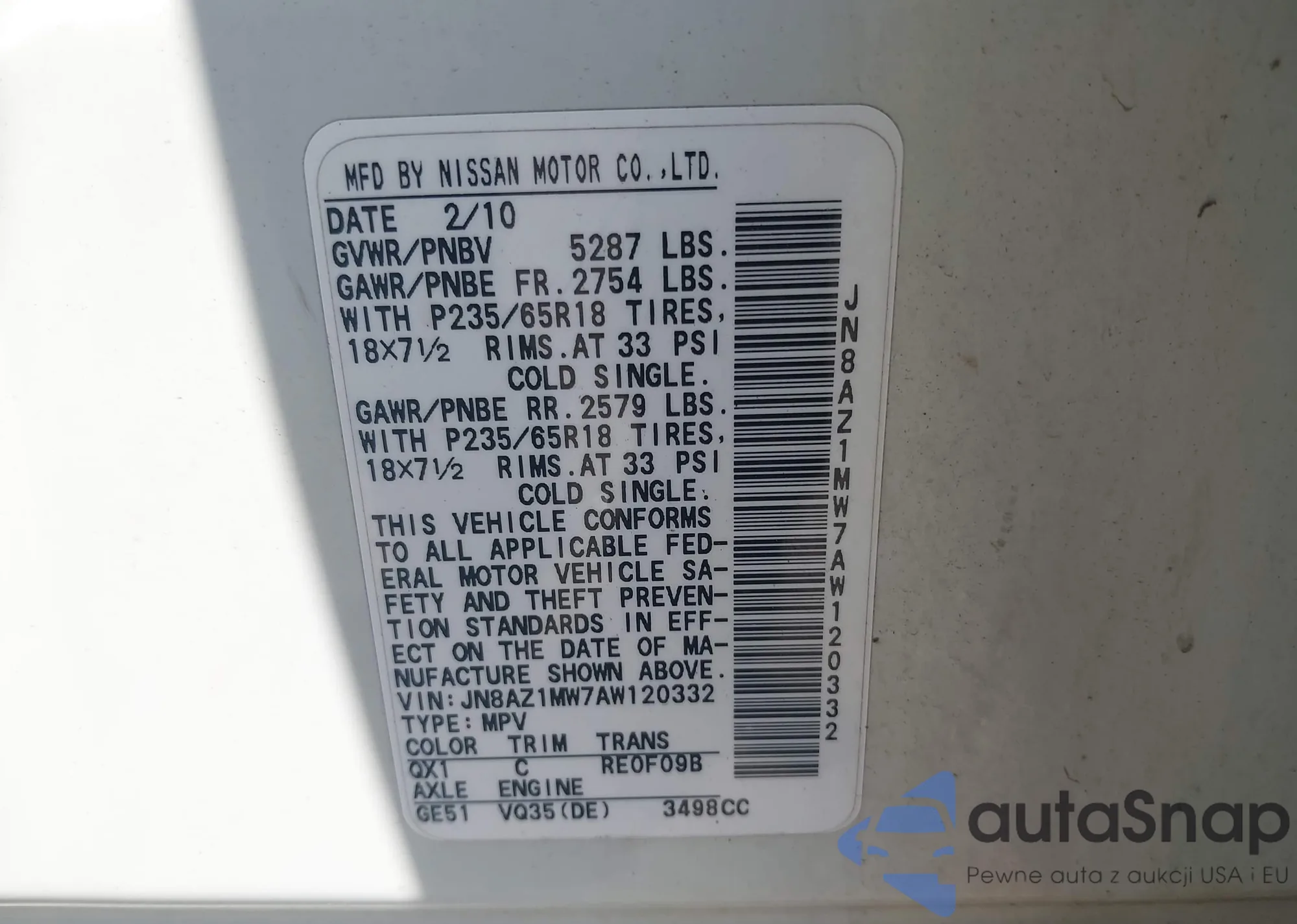 LOT: 42454139 VIN: JN1AZ0CPXBT005973