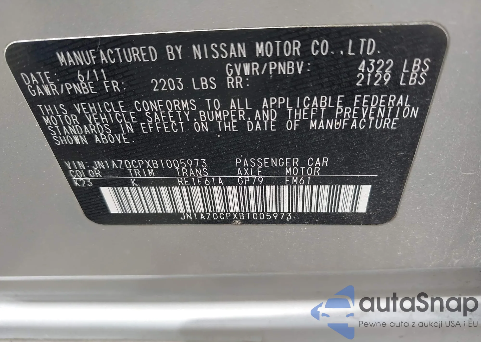 • VIN JN1AZ0CPXBT005973
