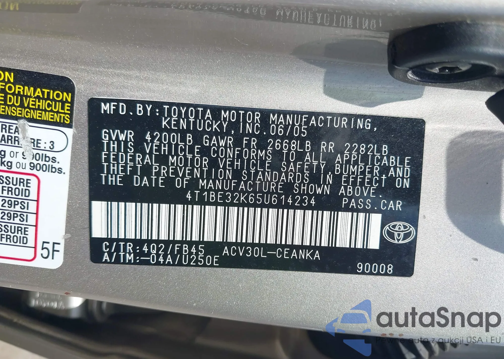 LOT: 42601080 VIN: 4T1BE32K65U614234