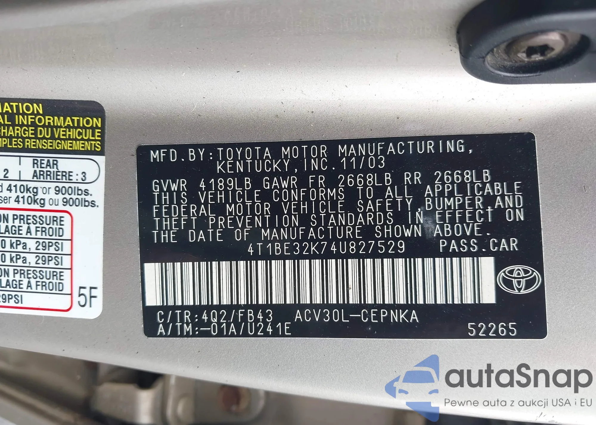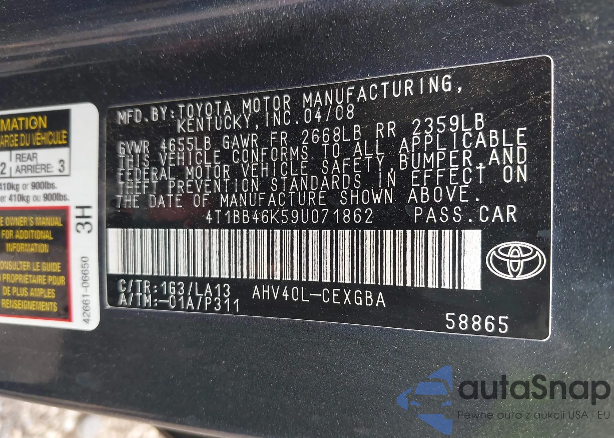LOT: 42512205 VIN: 4T1BB46K59U071862