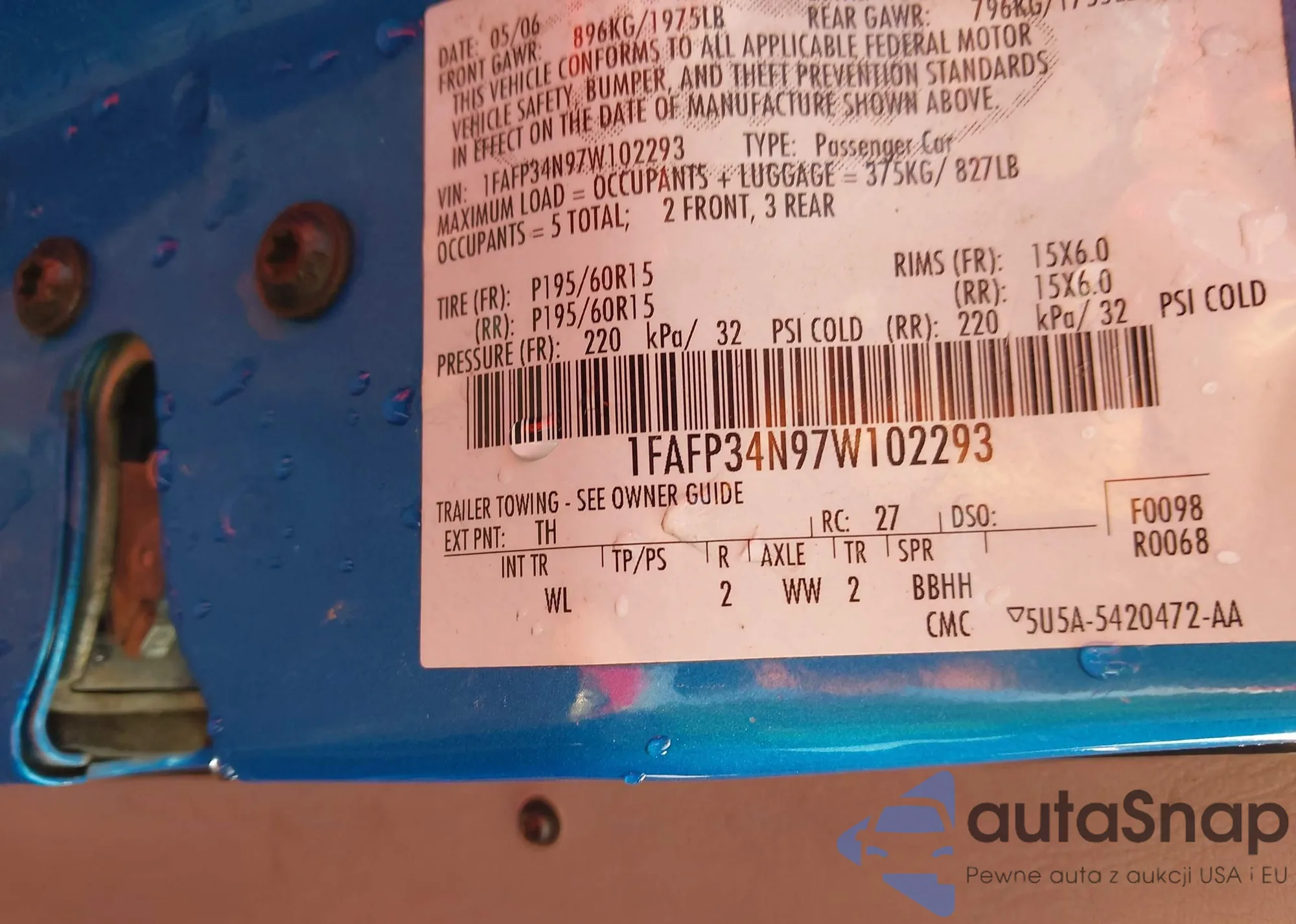 LOT: 42463997 VIN: 1FAFP34N97W102293