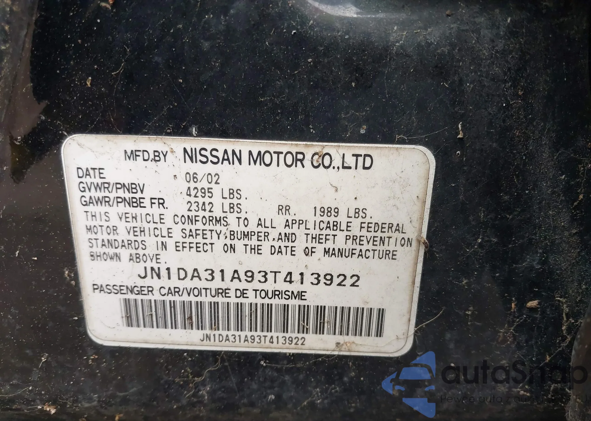 LOT: 42360687 VIN: JN1DA31A93T413922