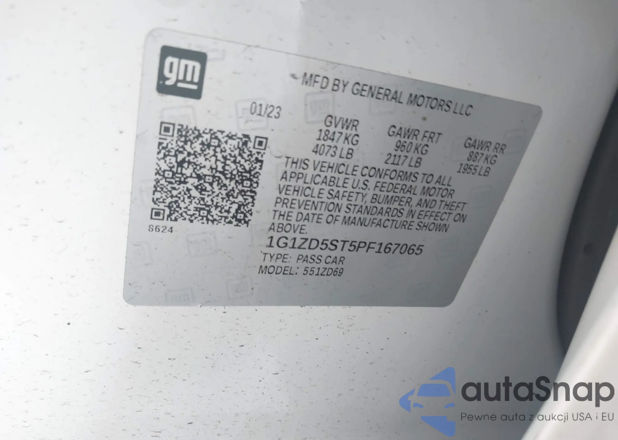 LOT: 42469607 VIN: 1G1ZD5ST5PF167065