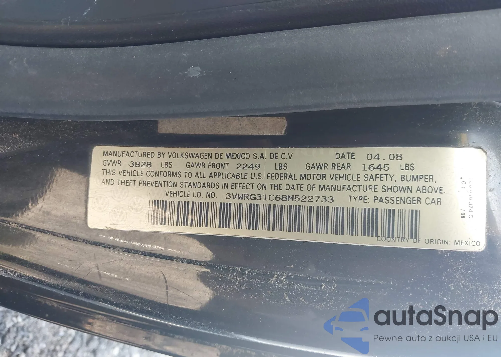 • VIN 3VV3B7AX9KM194511