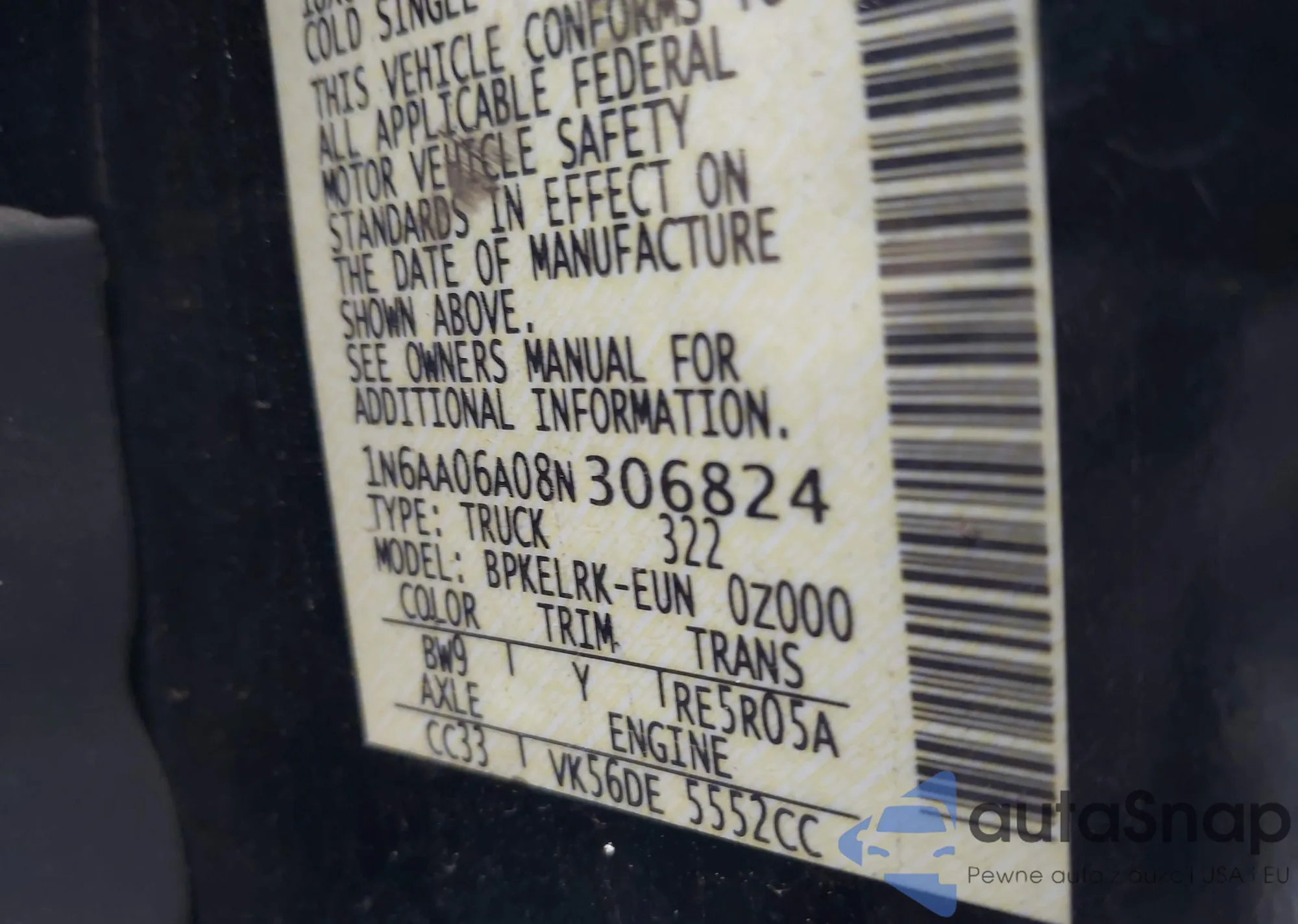 • VIN 5N1AN08U48C509902