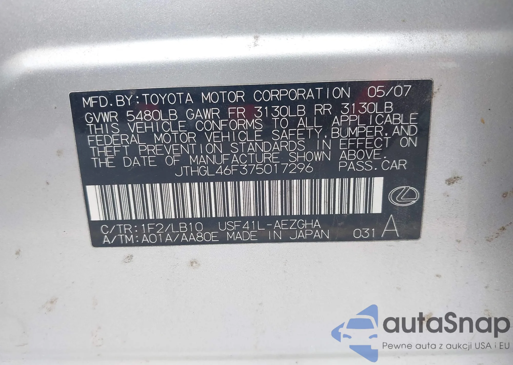 LOT: 42332308 VIN: JTHBA30G445010056