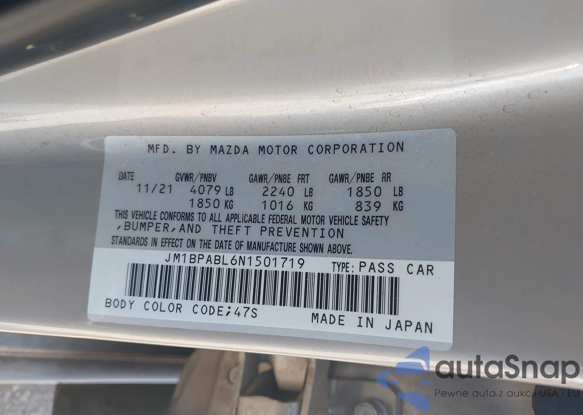 • VIN 1G1ZA5EU6CF348411