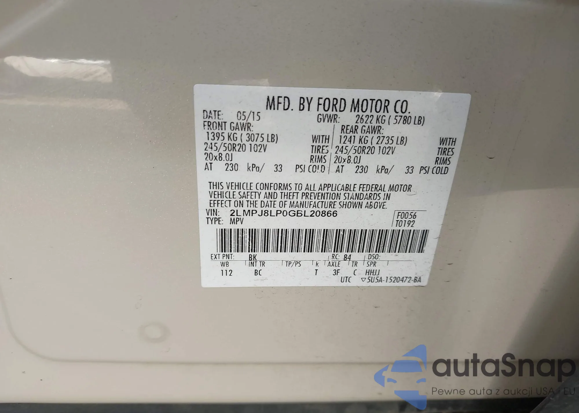 LOT: 42595681 VIN: 2LMPJ8LP0GBL20866