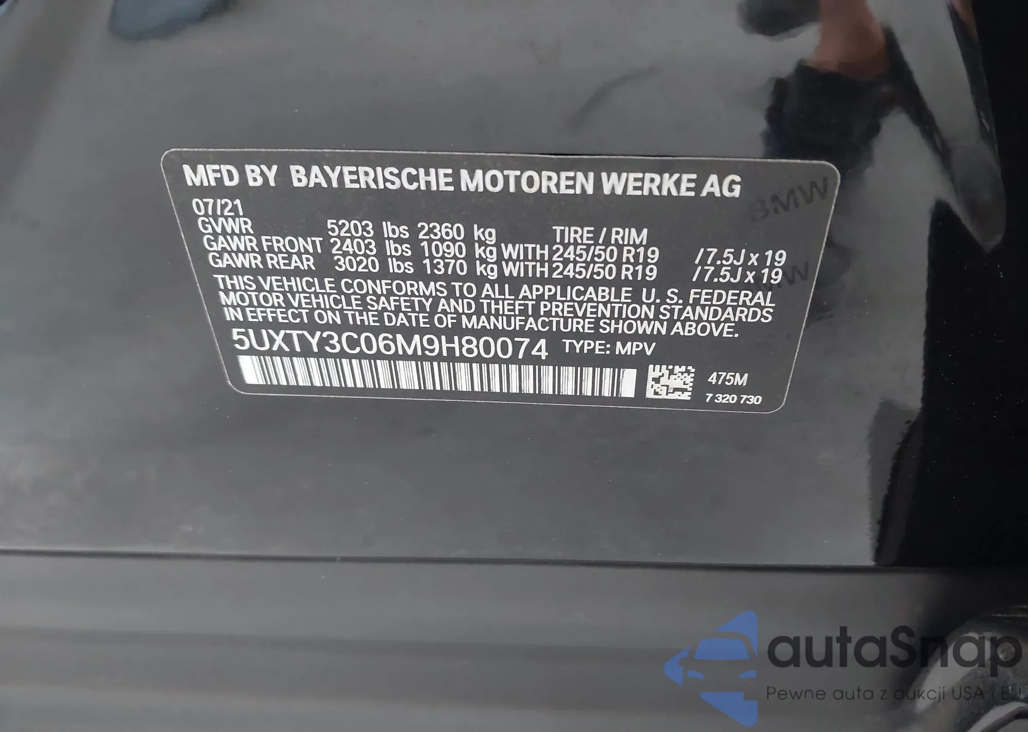 LOT: 42076409 VIN: 5UXTY3C06M9H80074