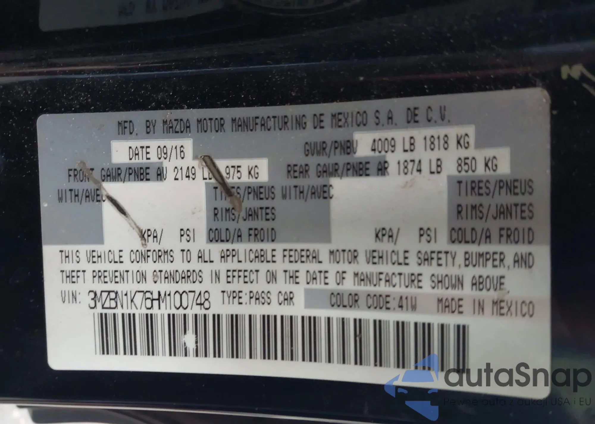 LOT: 42296798 VIN: 3MZBN1K76HM100748