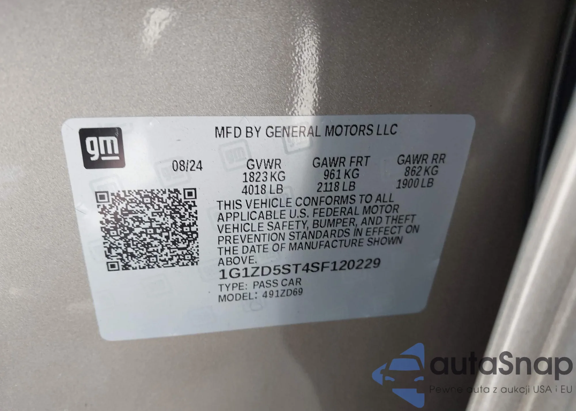 LOT: 42554550 VIN: 1G1ZD5ST4SF120229