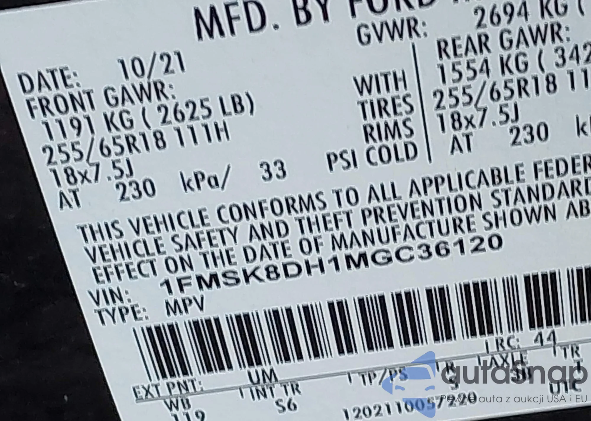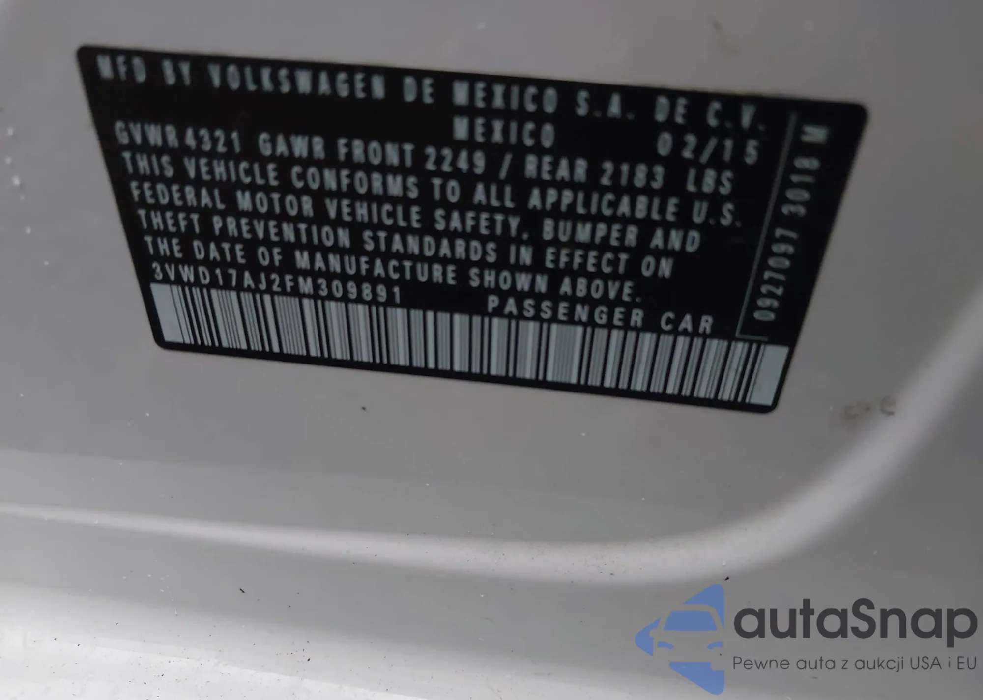 • VIN 1N4AB7APXEN854352