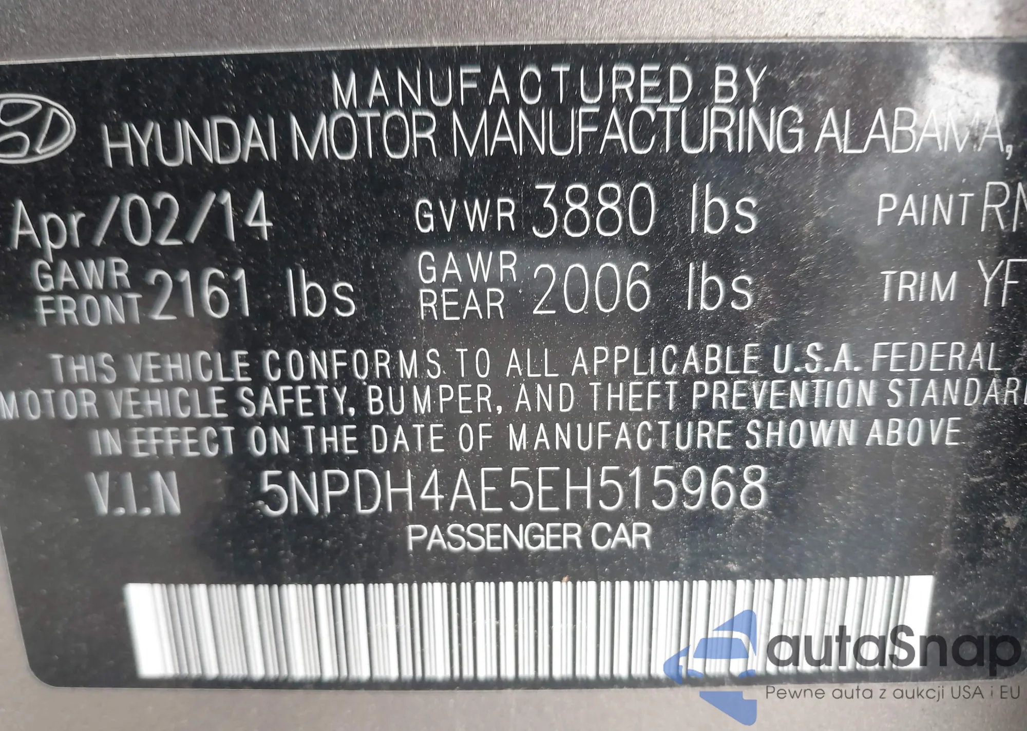 LOT: 42450492 VIN: KMHD35LH7GU292154