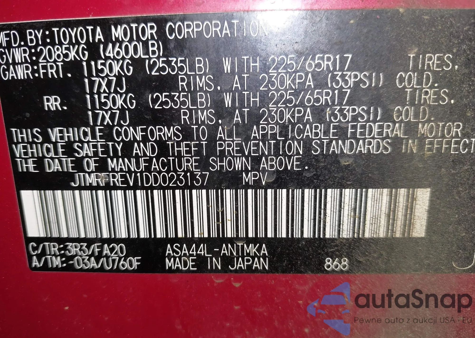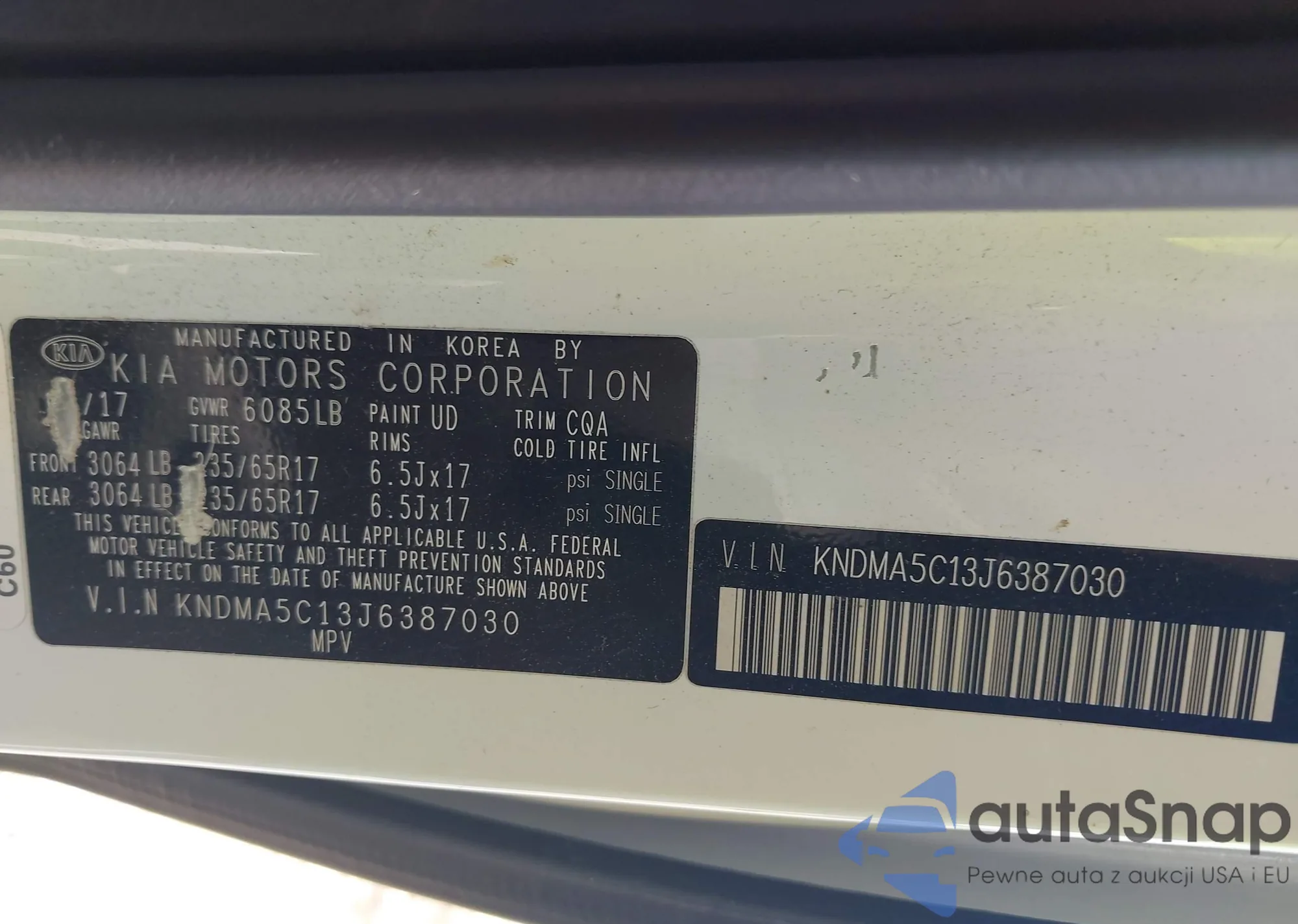 LOT: 42276965 VIN: KNDMA5C13J6387030