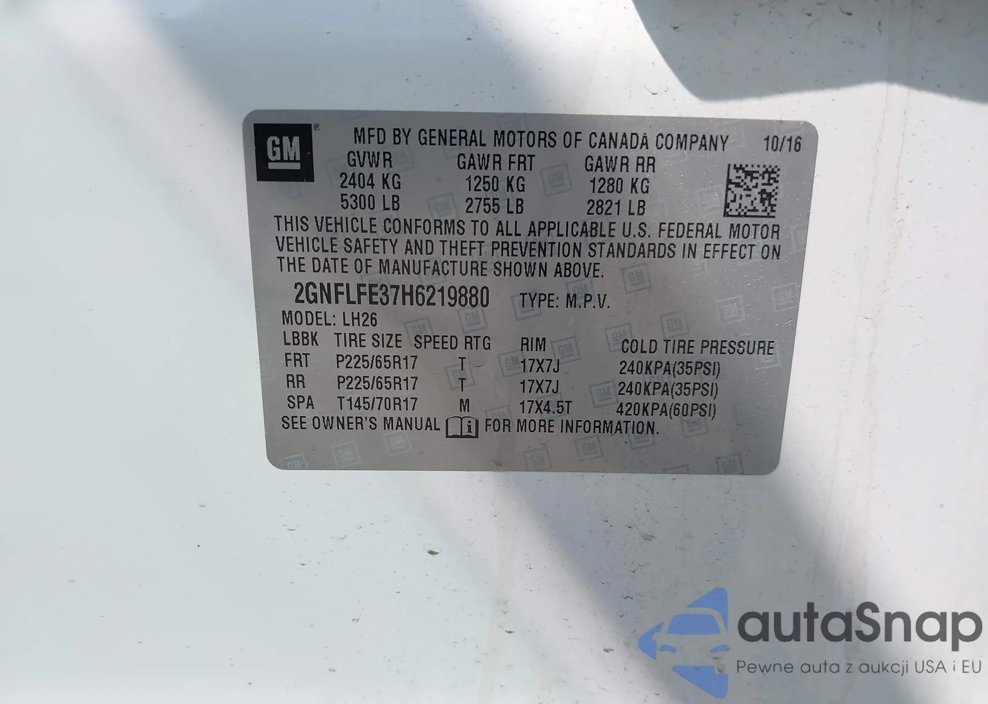 • VIN 2GNFLFE37H6219880