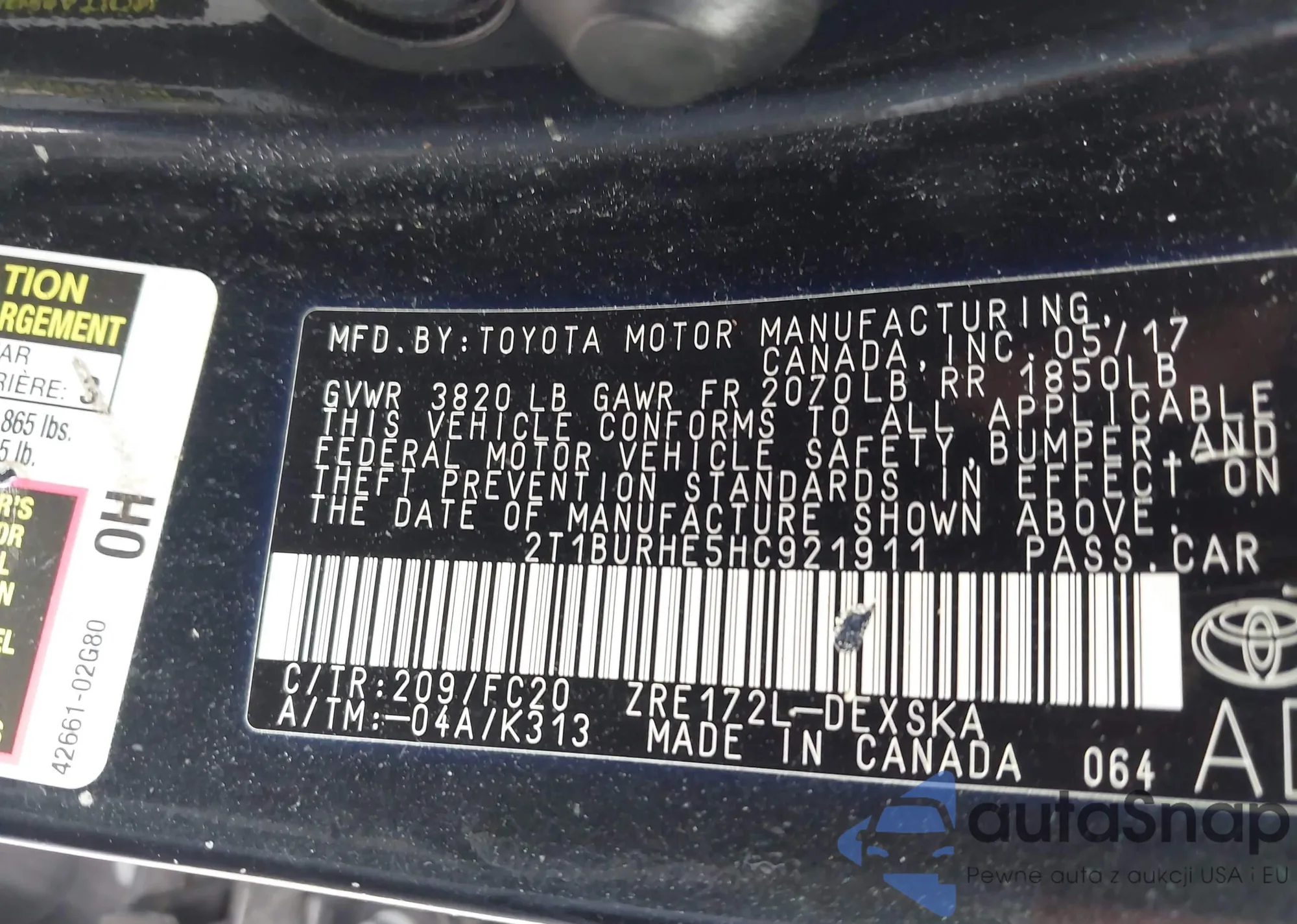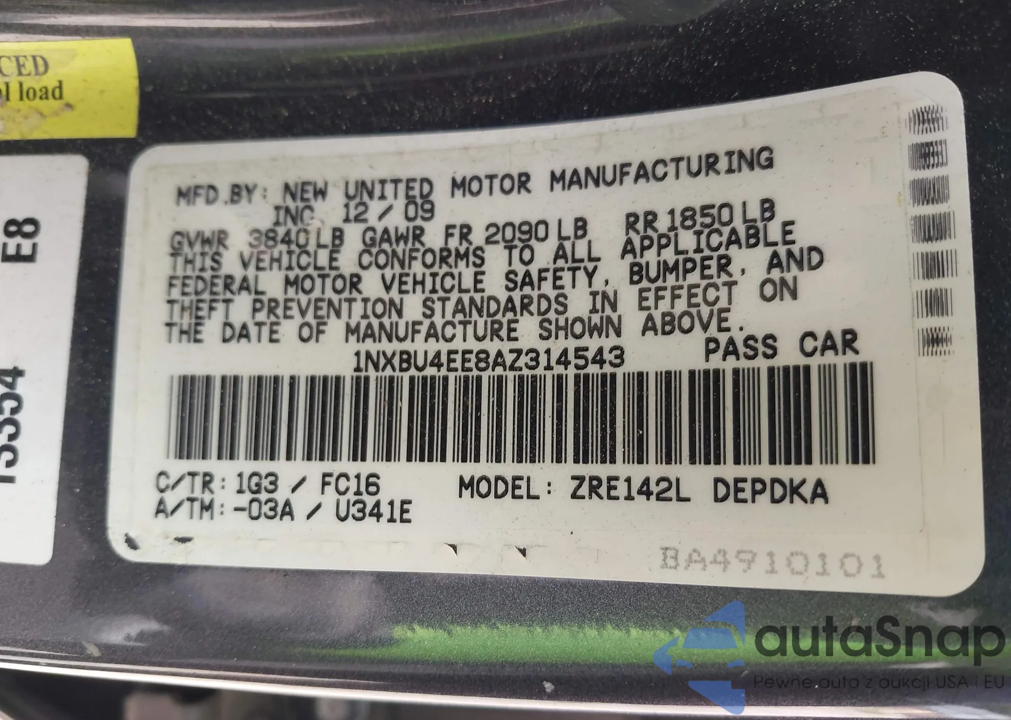 • VIN 1NXBU4EE8AZ314543