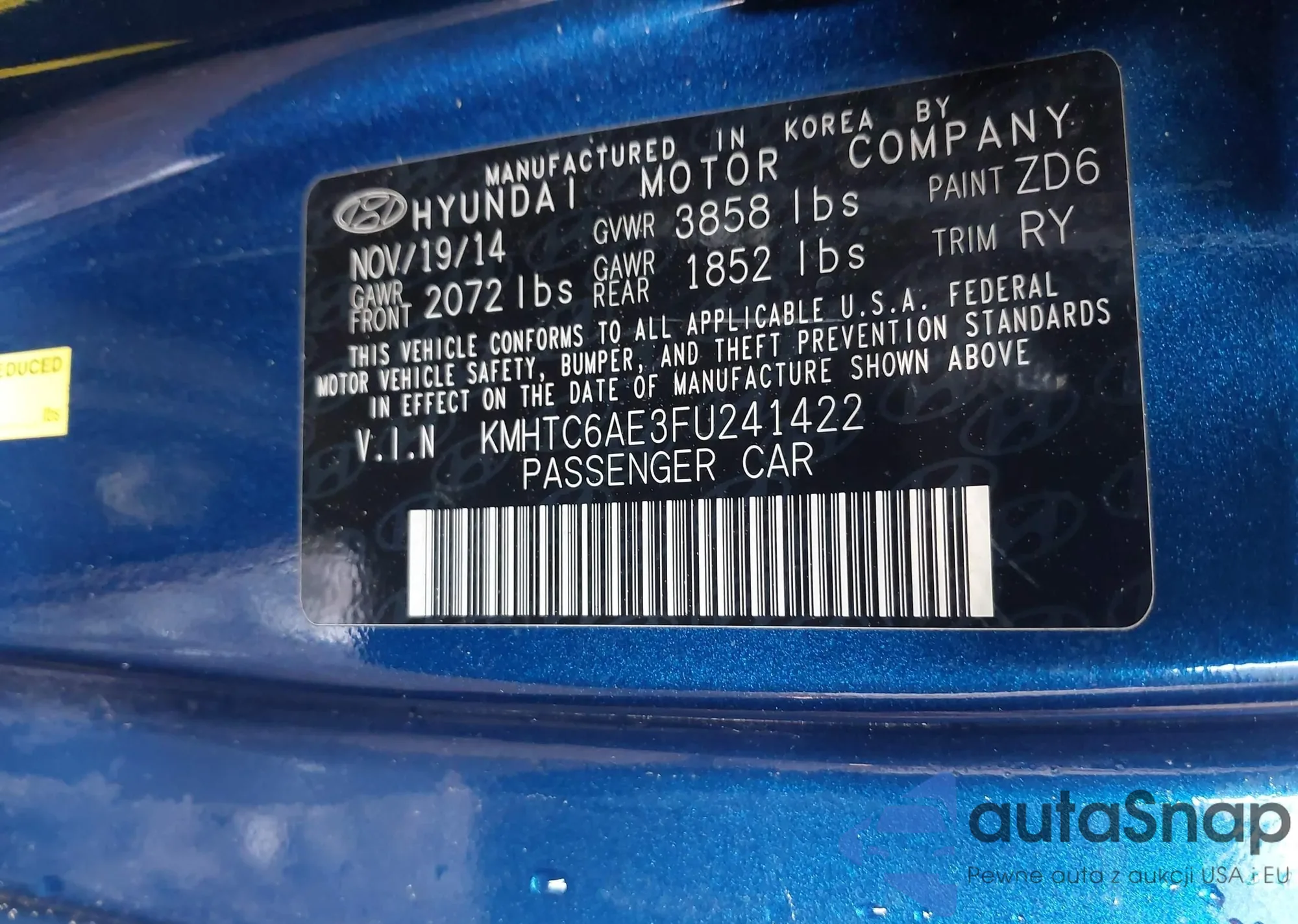 LOT: 42479933 VIN: KMHTC6AE3FU241422