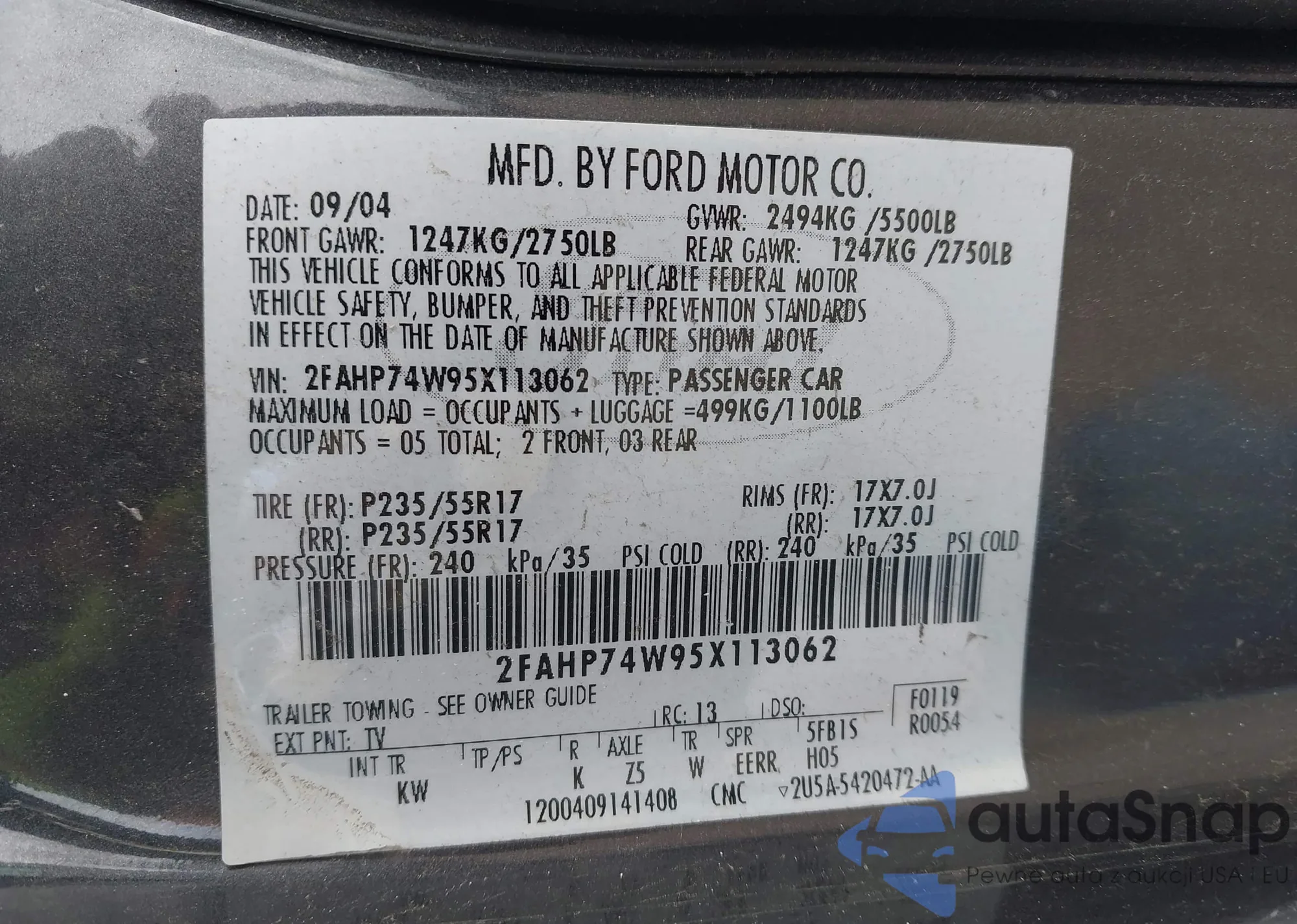 LOT: 42656629 VIN: 2FAHP74W95X113062