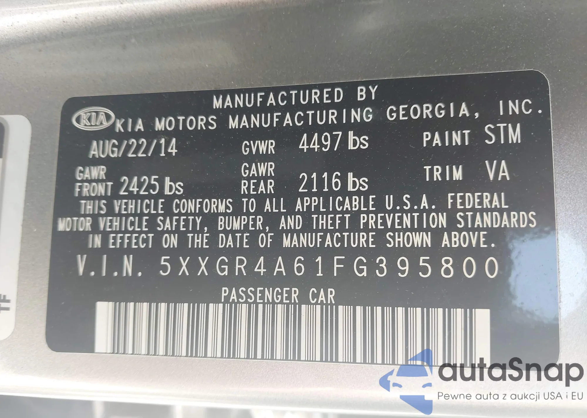 LOT: 42685231 VIN: 5XYKT3A16CG260264