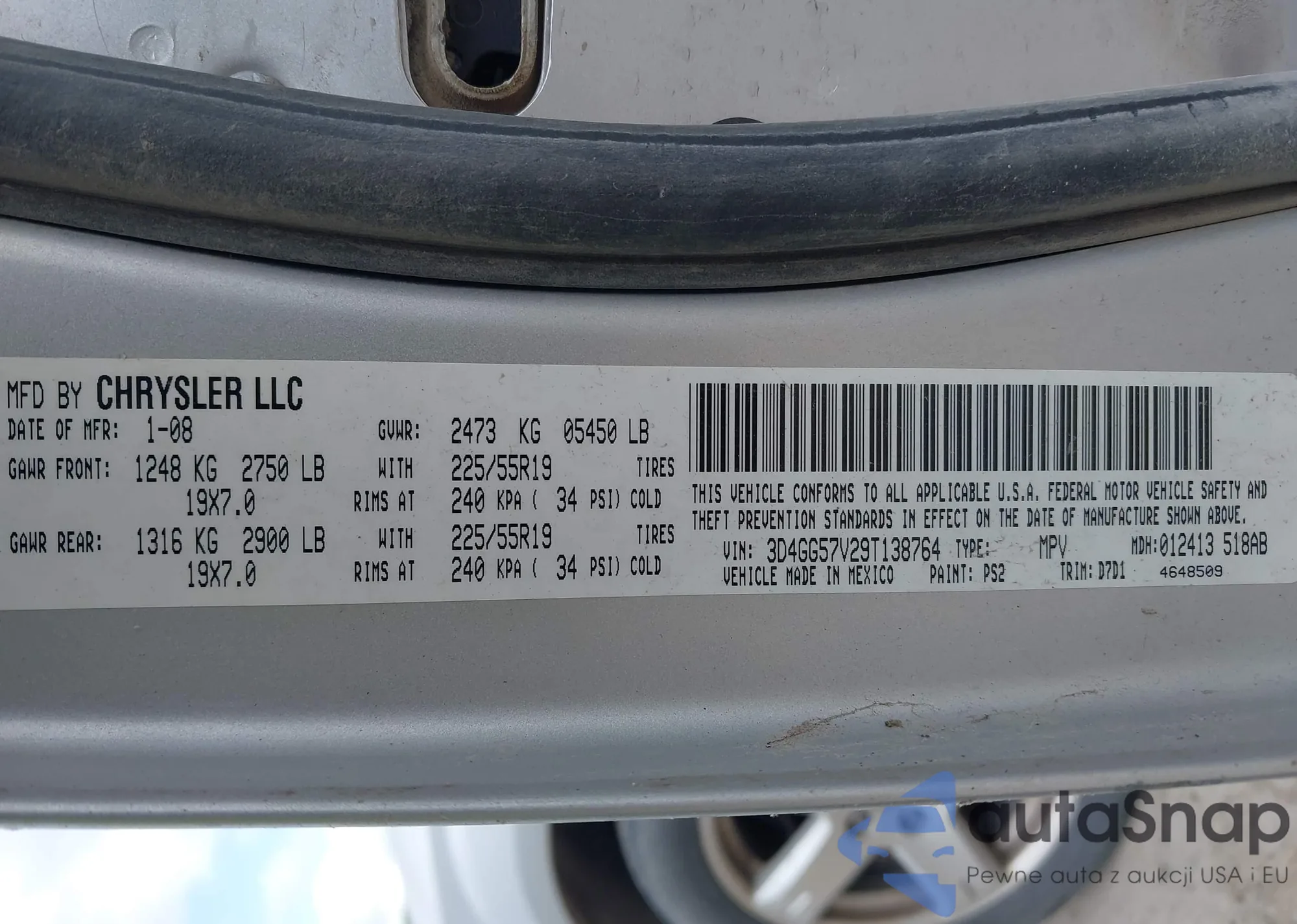 LOT: 42308024 VIN: 3D4GG57V29T138764