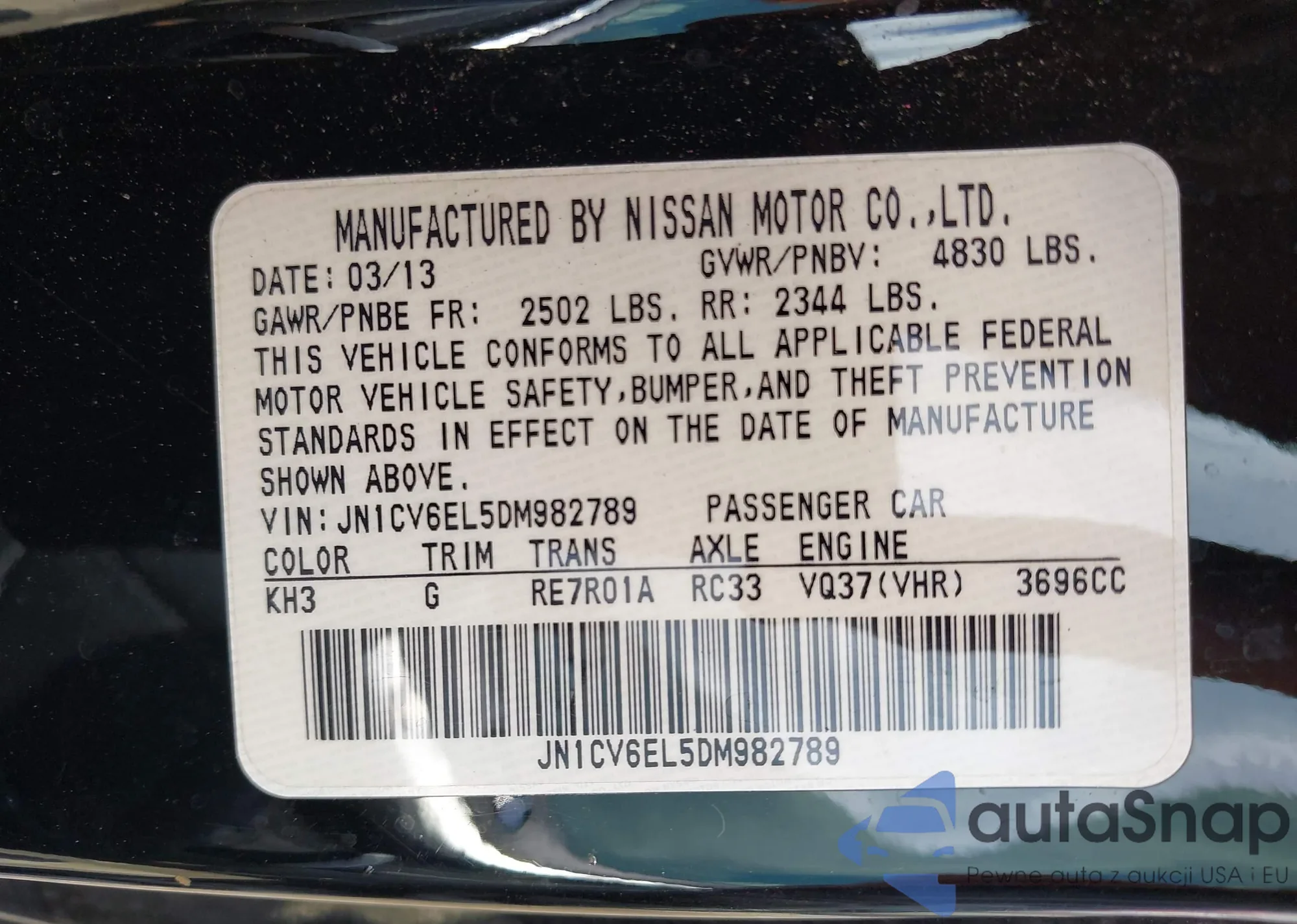 LOT: 42387369 VIN: JNKBF01A13M100599