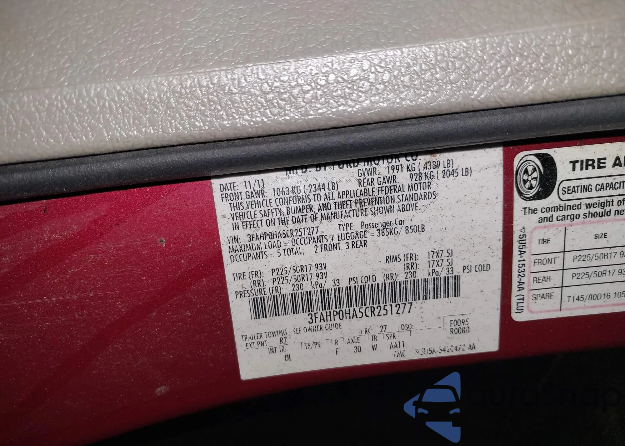 • VIN 3FAHP0HA5CR251277