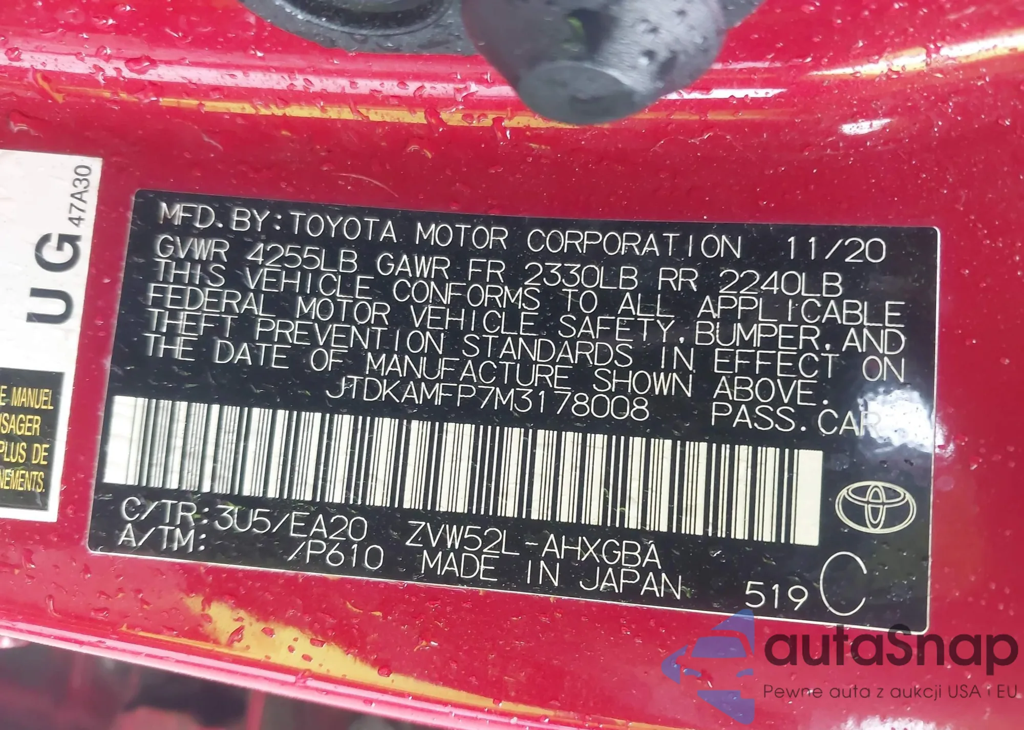 LOT: 42273697 VIN: JTDKAMFP7M3178008