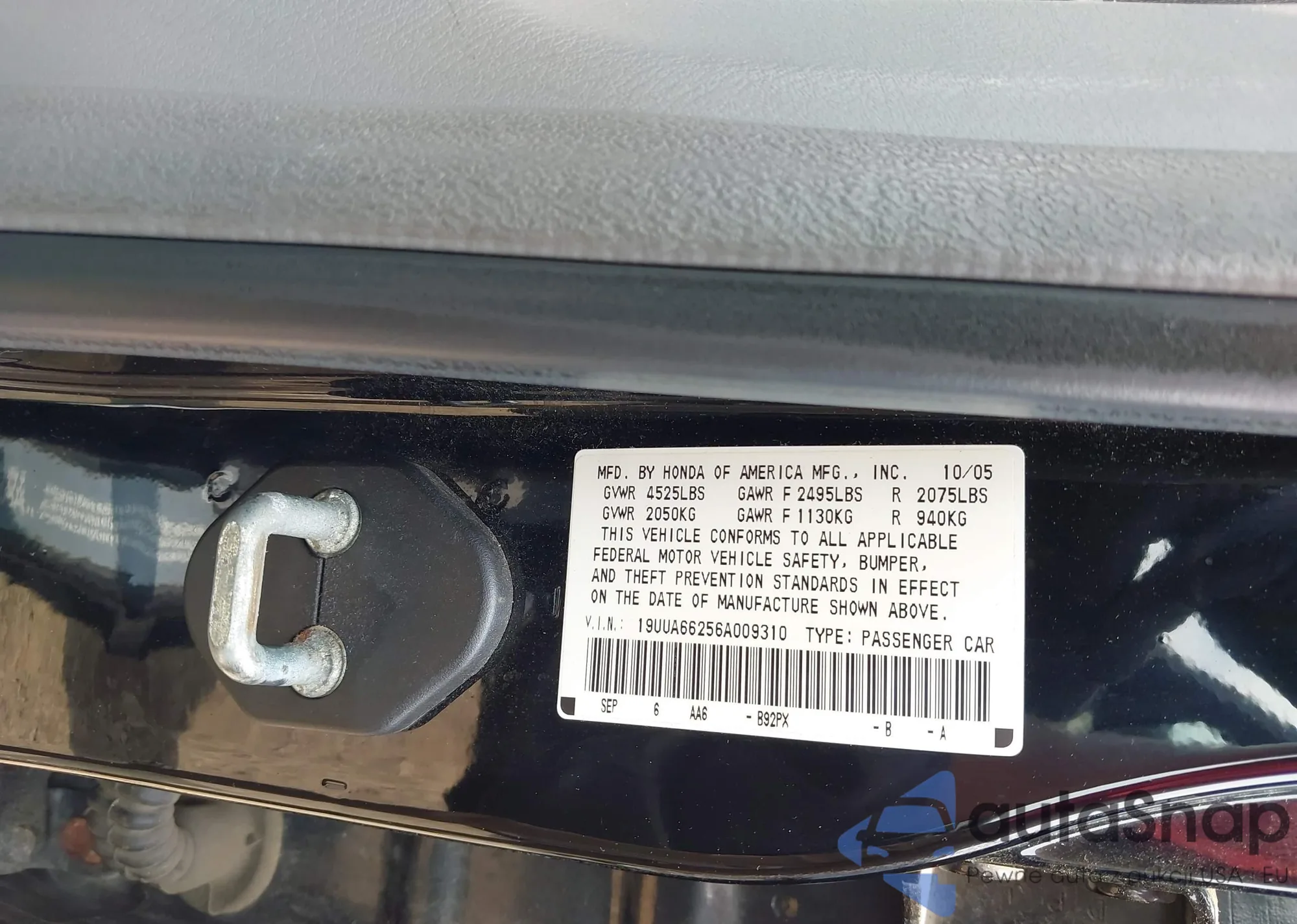 • VIN 19UUA66256A009310
