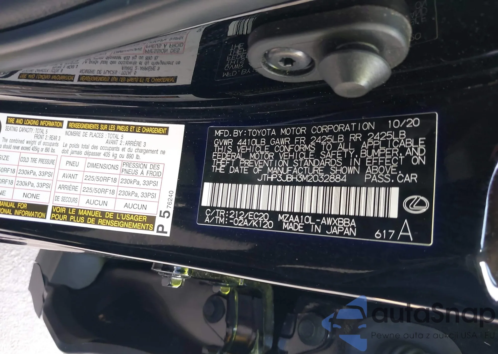 LOT: 42472162 VIN: JTHP3JBH3M2032884