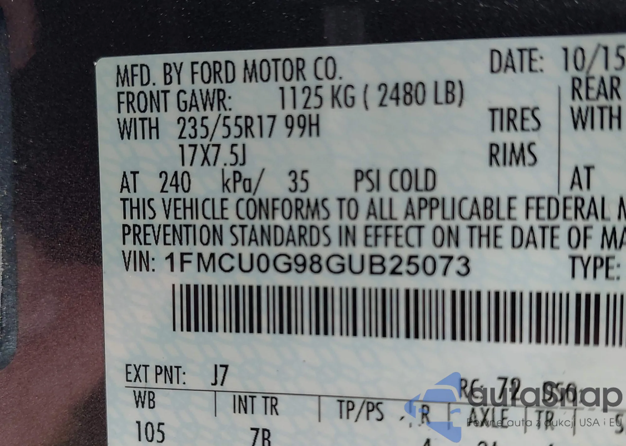 • VIN 1FMCU0G98GUB25073