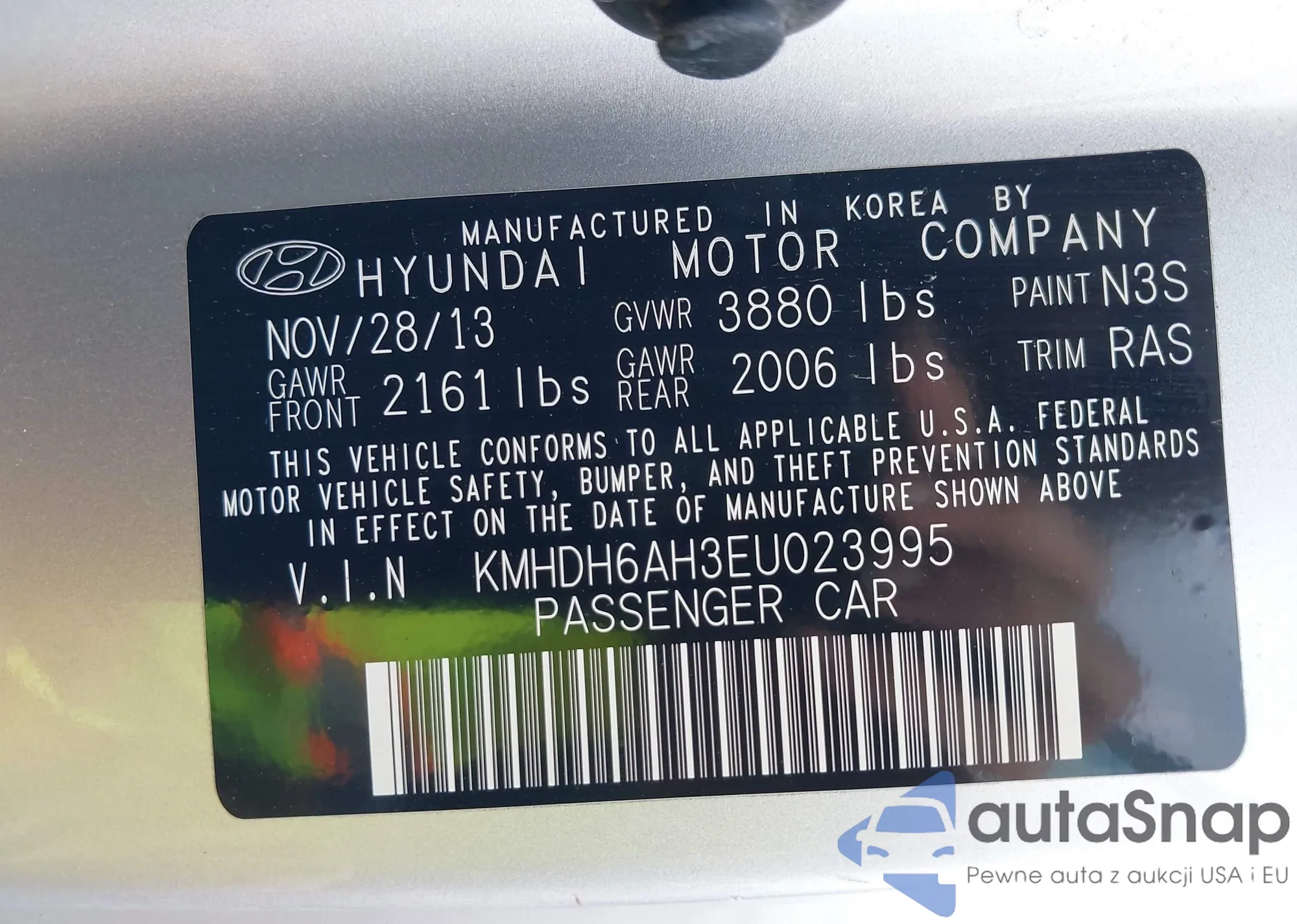 • VIN KMHDH6AH3EU023995