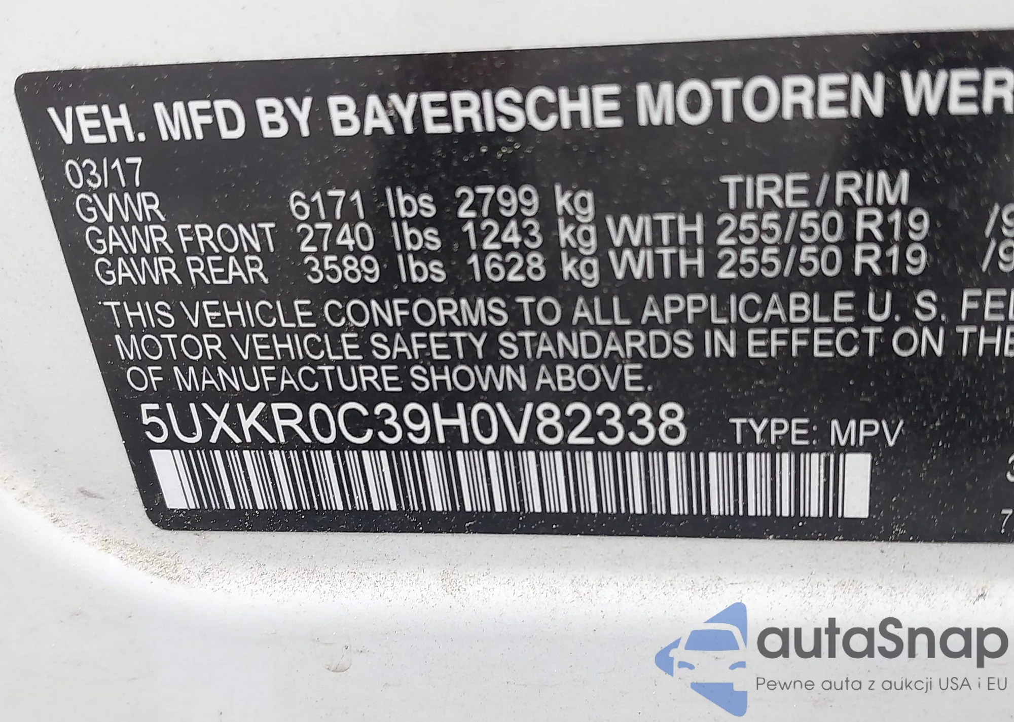 LOT: 42552712 VIN: 5UXKR0C39H0V82338