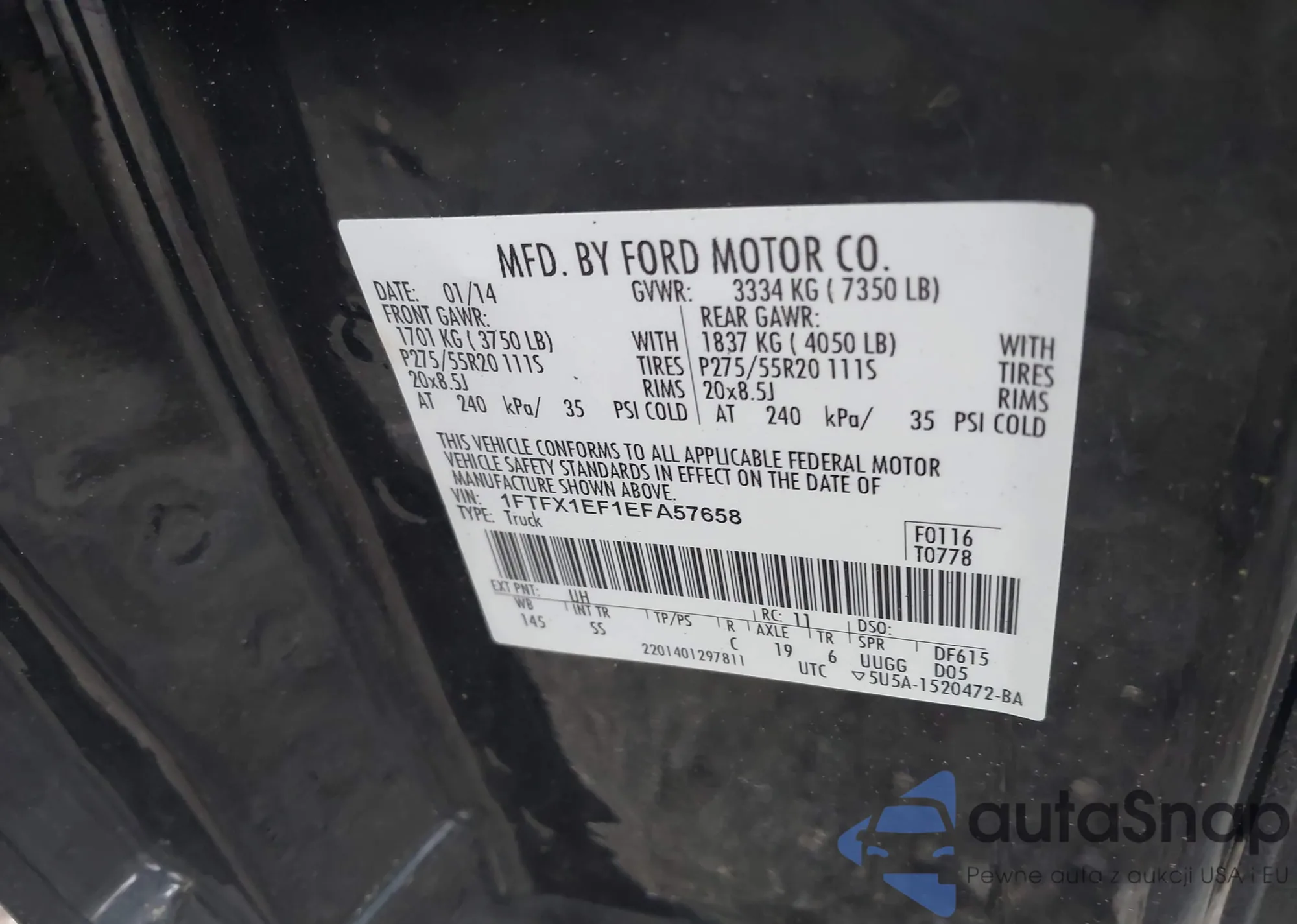 LOT: 42145216 VIN: 1FTFX1EF1EFA57658