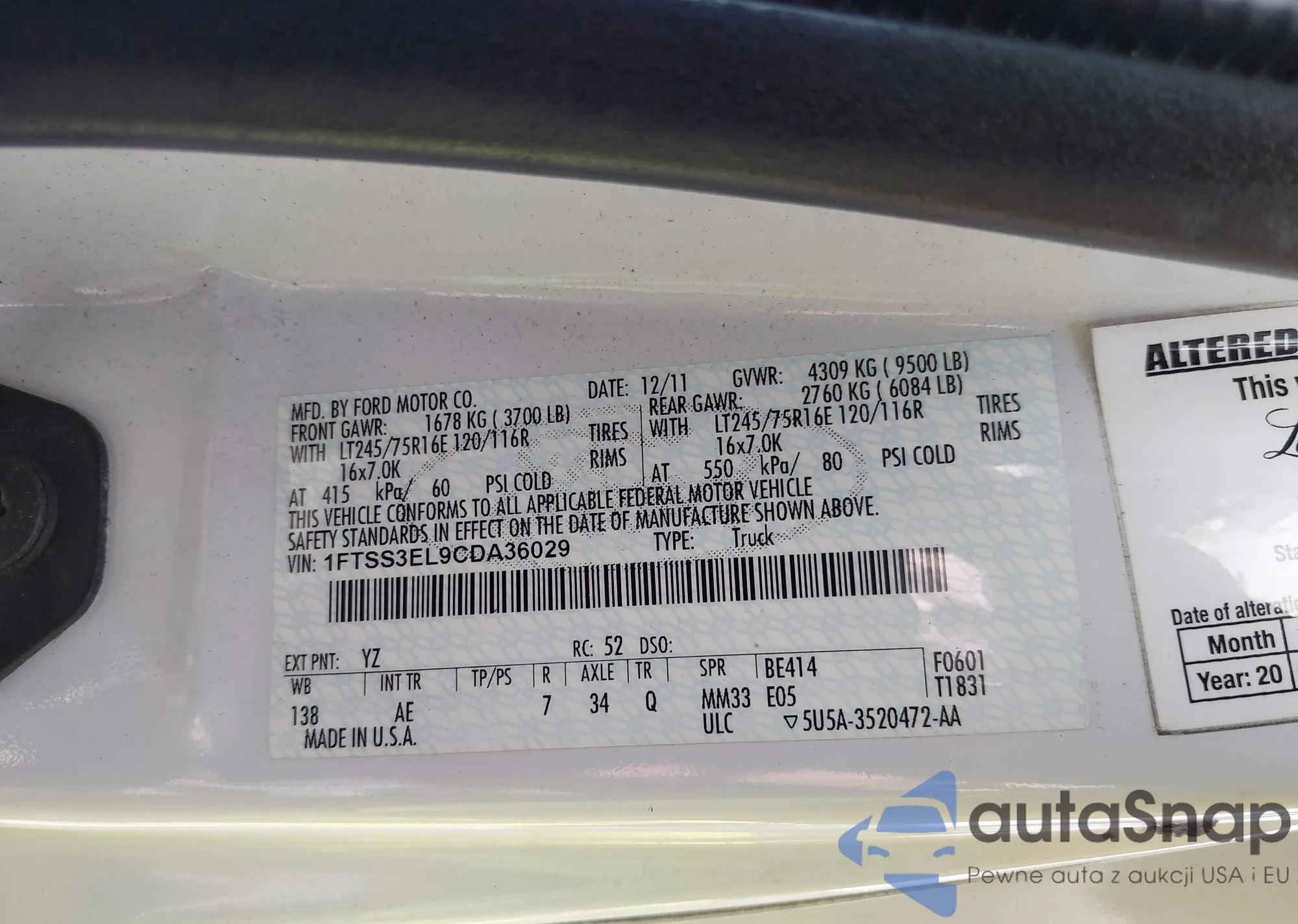 LOT: 42502499 VIN: 1FTSX31F23EA17186