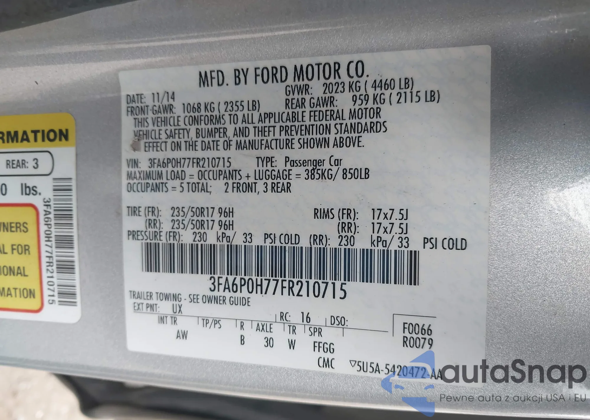 LOT: 42579818 VIN: 3FAHP0HG5BR312386